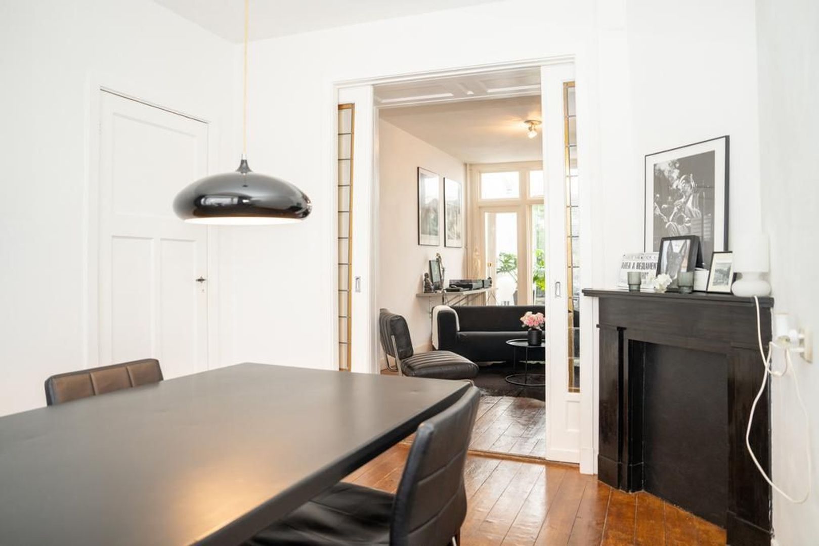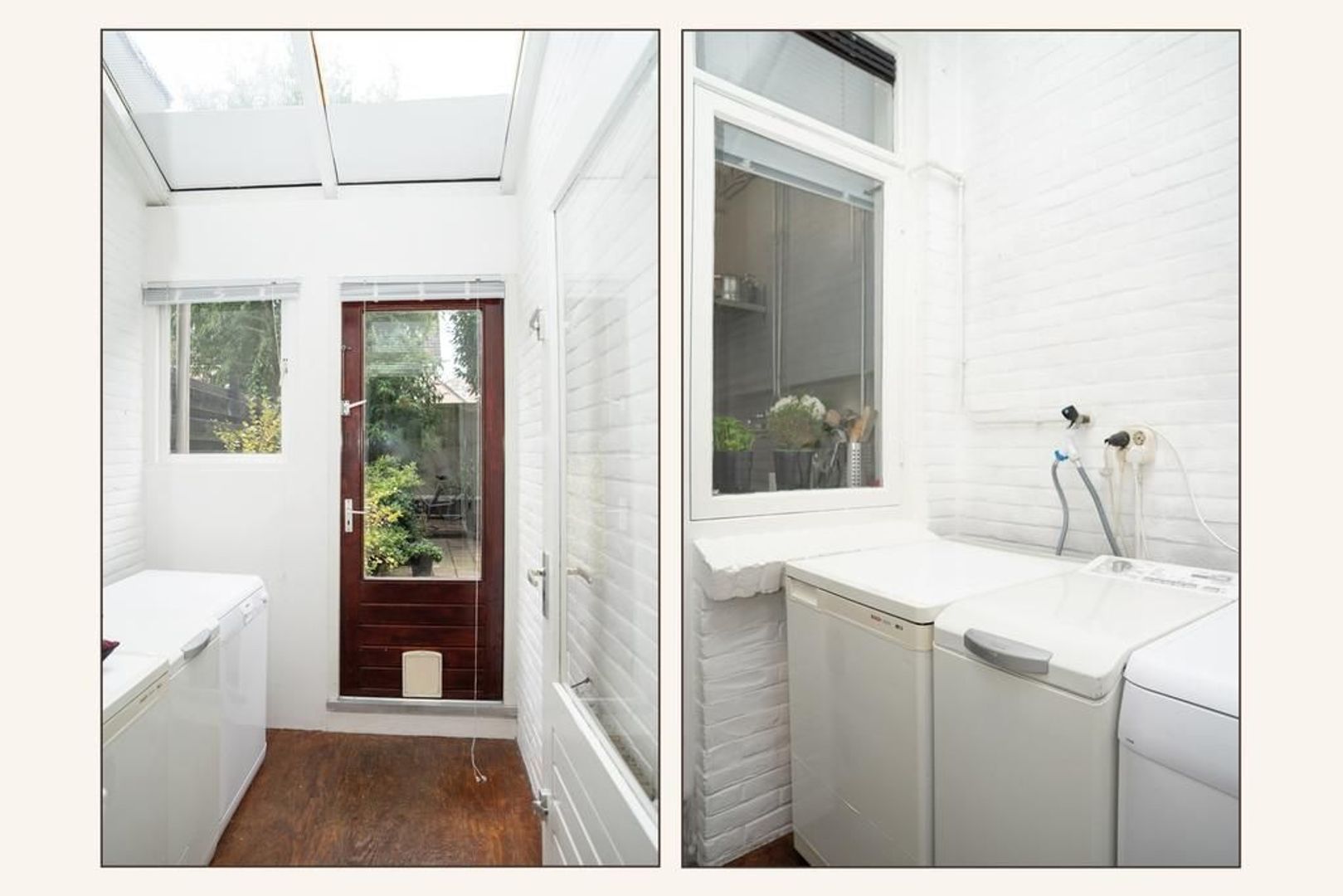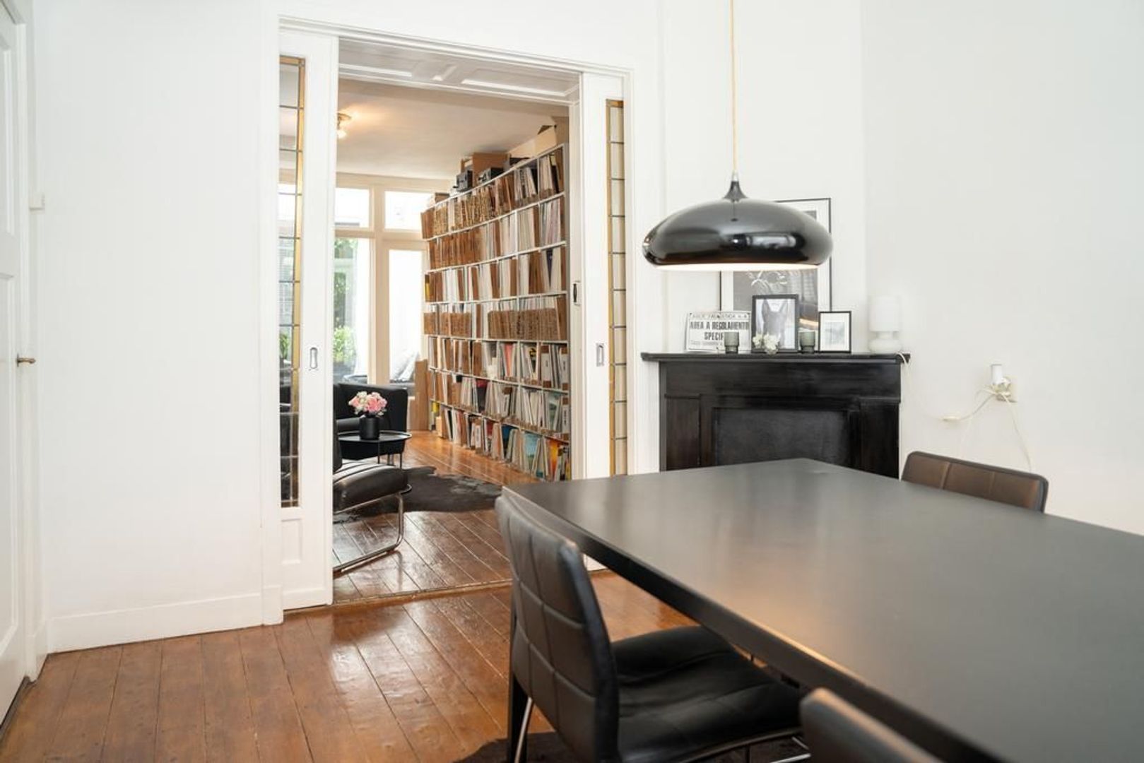 Begane grond: Entree met separaat toilet en trapopgang naar de eerste verdieping. De heerlijk ruime eetkamer met schouw is aan de voorzijde gelegen en voorzien van een knusse eettafel waar gezellig geborreld en gedineerd kan worden. Aan de achterzijde bevindt zich de ruime woonkamer. De woonkamer is voorzien van een goed onderhouden vloer, hoge plafonds en grotendeels strak gestukte wanden. Tussen de eetkamer en woonkamer bevinden zich charmante en-suitedeuren met glas-in-lood waardoor de eetkamer en de woonkamer van elkaar af te sluiten zijn. Door de verschillende raampartijen komt er veel natuurlijk daglicht de woning binnen. Via de hal betreed je de nette keuken en wasruimte. De beschutte maar toch zonnige achtertuin gelegen op het zuidoosten biedt plaats voor een fijn zitje.