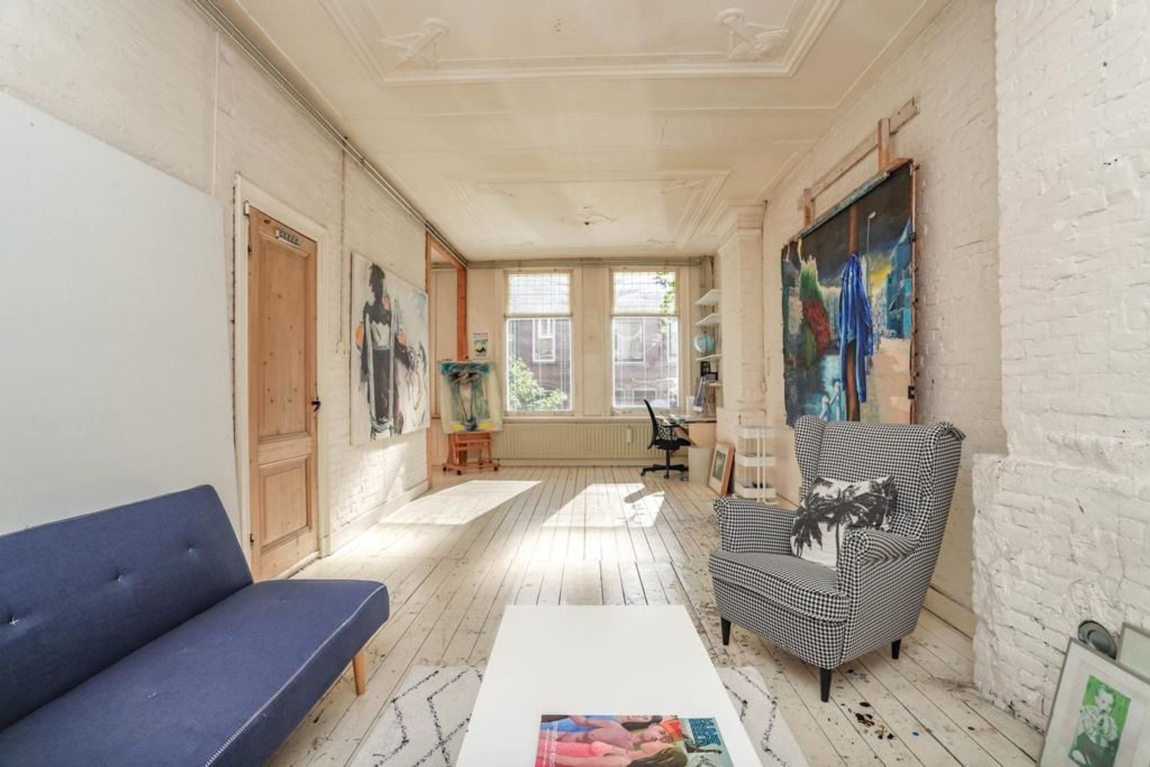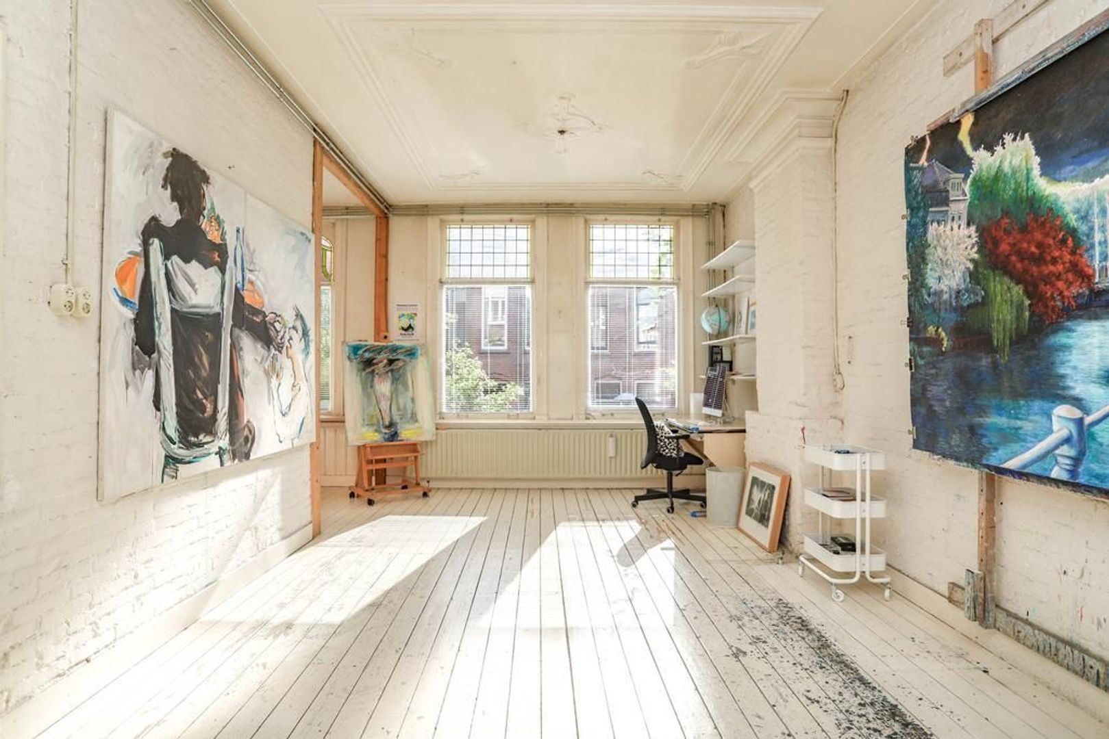 De eerste verdieping hoorde bij het voormalig dubbele bovenhuis en is wederom voorzien van prachtige details, zoals de mooi uitgesneden balustrade en de ornamenten in de tweede woonkamer. Deze ruimte is momenteel ingericht als atelier en werkkamer, maar kan eenvoudig worden opgedeeld in twee of drie slaapkamers. Aan de achterzijde bevindt zich een groot balkon op het zuidwesten, met prachtig uitzicht op de groene tuin. Op deze verdieping zijn ook een tweede keuken en een tweede toilet aanwezig.