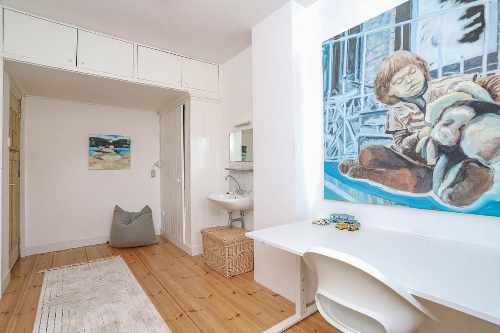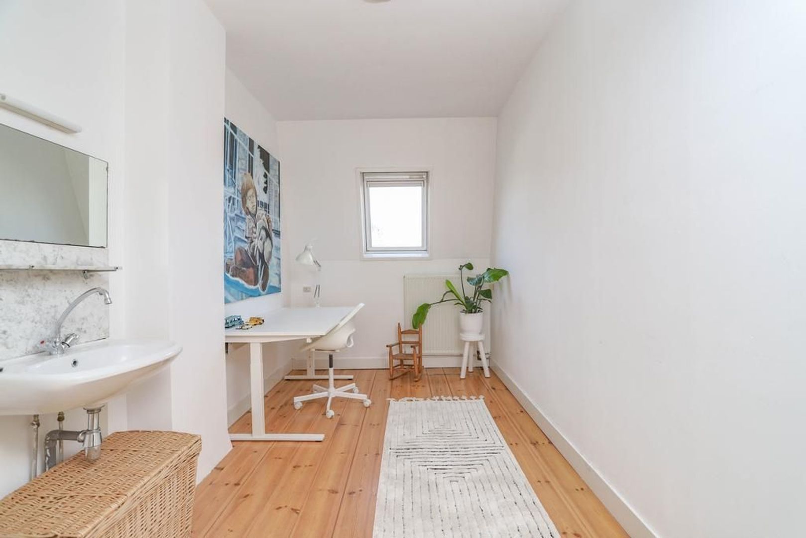 De tweede verdieping is eveneens ruim van formaat. Hier vind je drie royale slaapkamers en een badkamer met ligbad en wastafel. De slaapkamer aan de voorkant biedt uitzicht op de groene straat en is uitgerust met airconditioning, ideaal om in de winter te verwarmen en in de zomer te koelen. De ouderwetse schouw en de sierlijsten aan het plafond voegen een gevoel van klasse toe. De slaapkamers aan de achterzijde zijn beide voorzien van Velux-dakramen, waardoor er veel licht binnenkomt. De kleine slaapkamer heeft een inbouwkast en een wastafel. Dankzij de klassieke paneeldeuren is de oude stijl behouden gebleven, waardoor je je in een prachtig pand thuis kunt voelen.