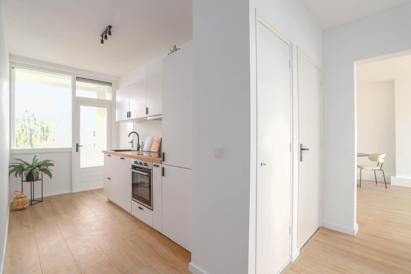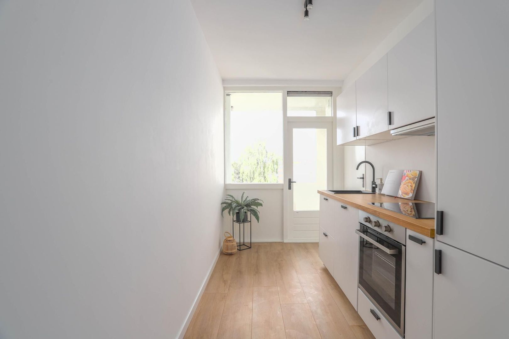 Het appartement kenmerkt zich door de moderne afwerking en is volledig instap klaar. Het appartement is in 2024 namelijk volledig gerenoveerd. De keuken, badkamer, separate toilet en de vloer zijn in 2024 geplaatst. Het stucwerk is volledig gedaan opnieuw gedaan en alles is opnieuw geschilderd. Via de entree kom je binnen in de hal waarvandaan je toegang hebt tot de keuken, meterkast, toilet, woonkamer en slaapkamer. De woonkamer is gelegen aan de voorzijde van het appartement met uitzicht op de straat. De woonkamer biedt voldoende mogelijkheden voor het creëren van een gezellige woon- en eetkamer. De ruimte is door de lichte vloer en muren erg licht en door de grote raampartijen is er veel natuurlijk daglicht om heel de dag van te kunnen genieten. Via de hal is gemakkelijk de gerenoveerde keuken te vinden. De keuken beschikt over de volgende inbouwapparatuur: kookplaat, afzuigkap, oven, vaatwasser en koelkast. De stijlvolle keuken is erg neutraal, heeft een houten keukenblad en zwarte details. Via de keuken is de badkamer te bereiken. De badkamer past bij de sfeer in de woning en is erg stijlvol. De badkamer is voorzien van een inloopdouche, wastafel en wastafelmeubel. Via de keuken is ook het balkon te bereiken. Op het balkon kan je genieten van de buitenlucht en deze is gelegen op het noordwesten. Het appartement is voorzien van 2 ruime slaapkamers. De eerste kamer is te bereiken vanuit de hal en ligt aan de voorzijde van het appartement. De tweede slaapkamer is te bereiken vanuit de woonkamer en is gelegen aan de achterzijde van de woning.