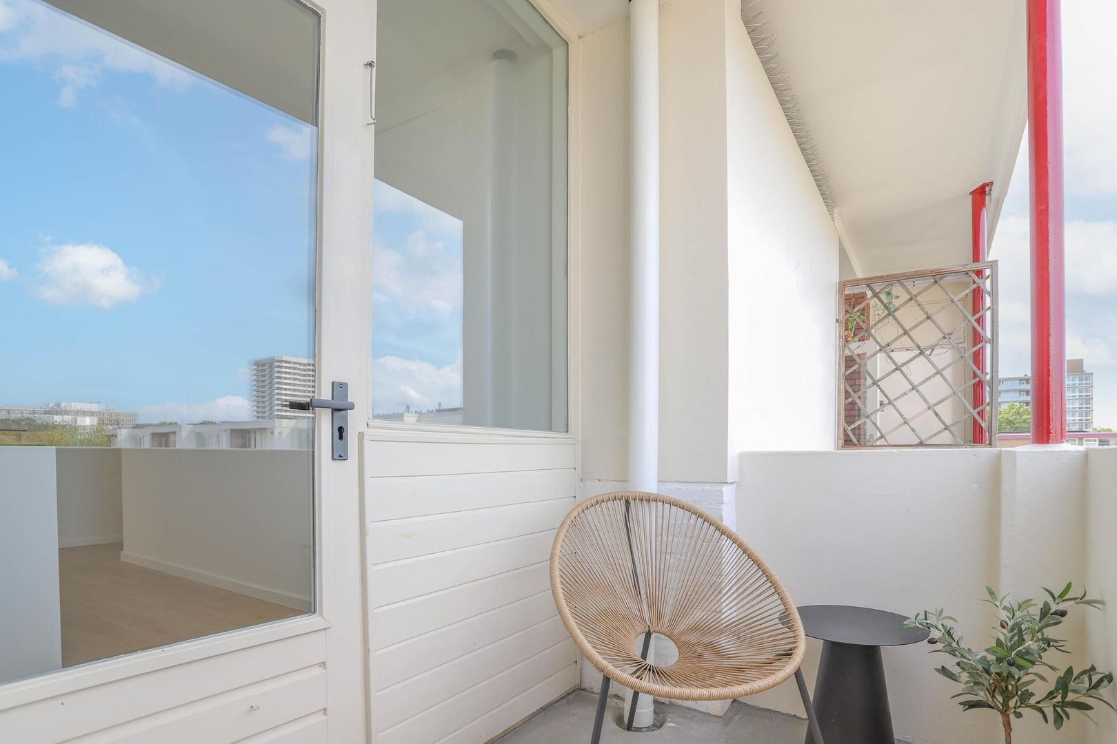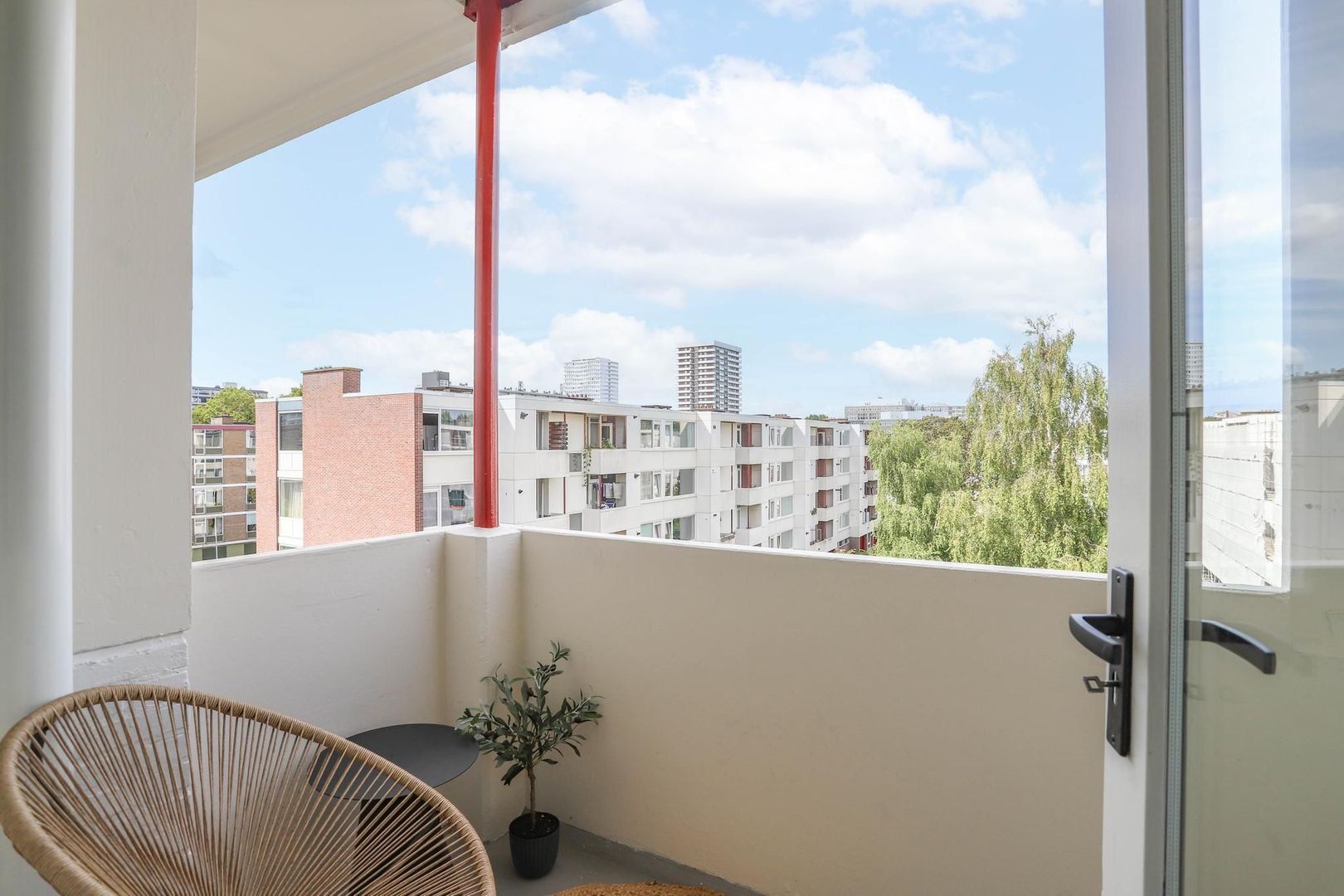 Het balkon is gelegen op het noordwesten en heeft een vrije ligging met voornamelijk middag en avondzon. Het is hier goed toeven gedurende de verschillende seizoenen.