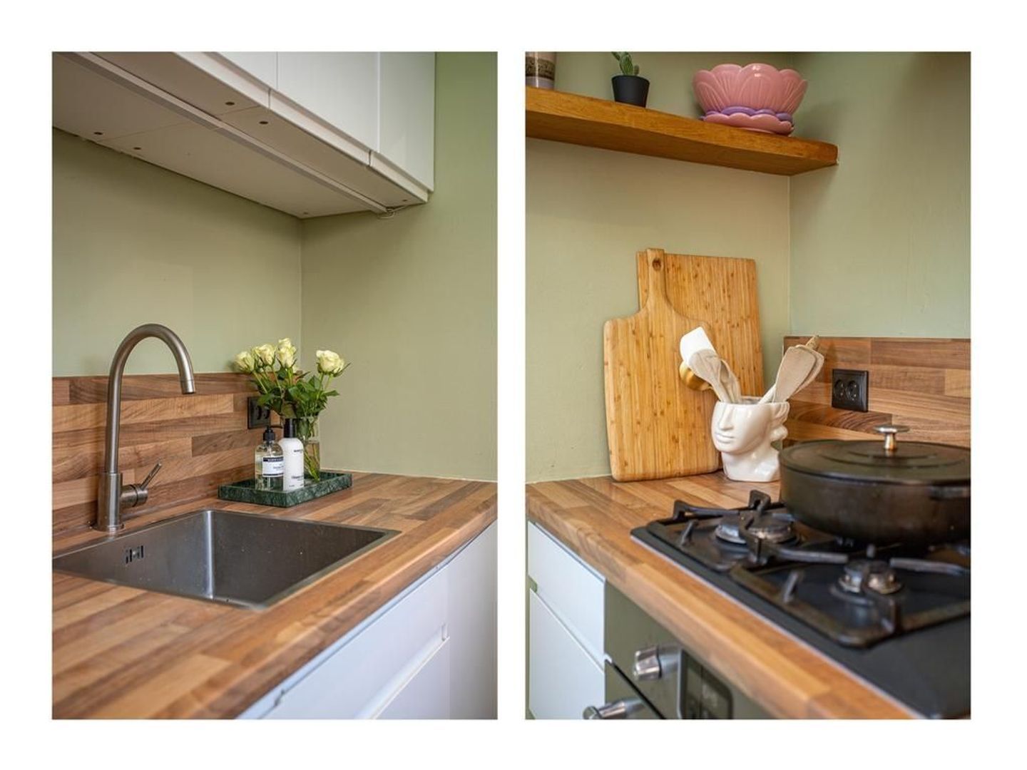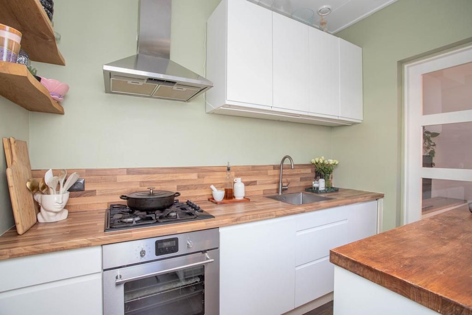 De woning omvat momenteel een ruime woonverdieping met moderne half open keuken. De keuken is voorzien van diverse inbouwapparatuur, heeft een moderne uitstraling en biedt net als de woonkamer toegang tot de achtertuin. Het formaat van de achtertuin is ruimer dan gemiddeld en biedt dus de mogelijkheid voor verschillende zitjes en indelingen. Dankzij de diepte en de noordwestelijke ligging weet de zon, met name in het voorjaar en zomer, de tuin nagenoeg de hele dag te vinden.