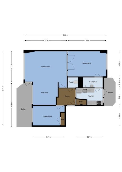 • Balkon op het westen en balkon op het oosten, waardoor er altijd een plekje in de zon én schaduw te vinden is;