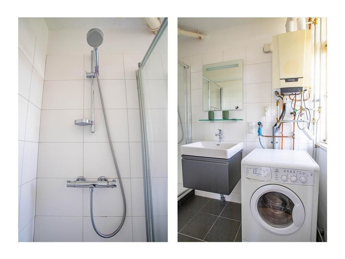Via de slaapkamer is de badkamer toegankelijk. De badkamer heeft een verzorgde uitstraling en is voorzien van een douche, wastafel met wastafelmeubel en de opstelplaats van de wasmachine.