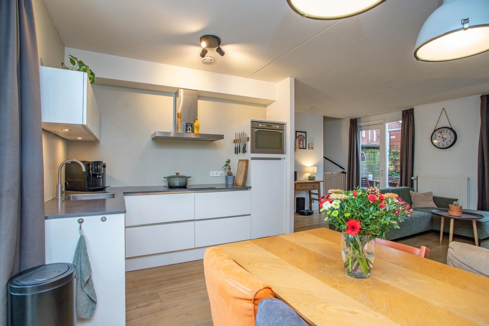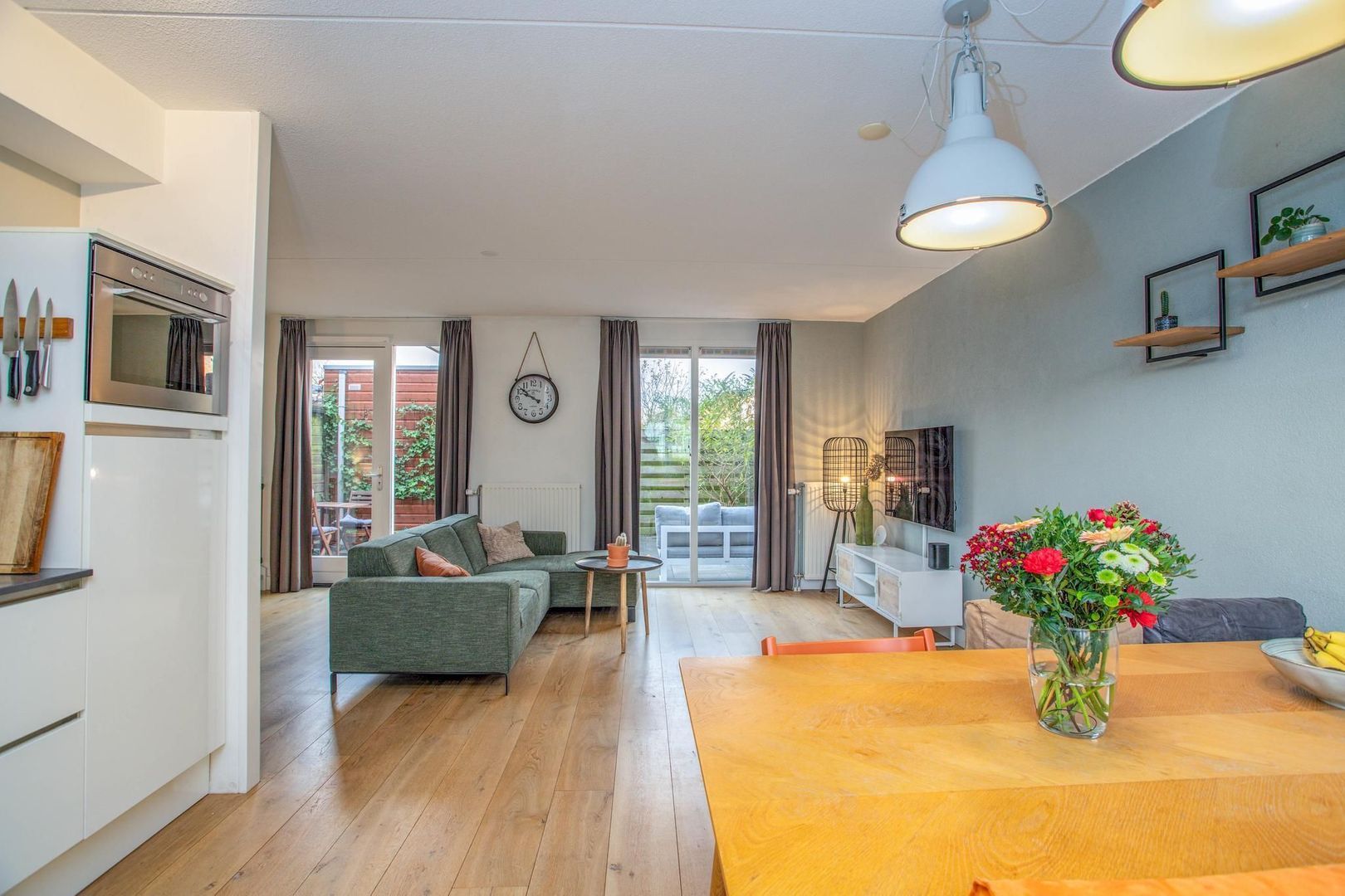 Je komt de woning binnen via de voortuin en betreedt de hal. Het in 2024 gerenoveerde toilet bevindt zich in de hal. Vanuit de hal kom je in de lichte woonkamer, met uitzicht op de tuin. In de woonkamer is een trapkast aanwezig, ideaal voor het opbergen van spullen. De woonkamer biedt voldoende ruimte voor een ruime zithoek en een grote eettafel in de moderne open keuken. De keuken is van alle inbouwapparatuur voorzien, zoals een inductiekookplaat, afzuigkap, vaatwasser en koelkast. De fraai aangelegde tuin ligt op het zuidwesten, waardoor er altijd een plek in de zon én schaduw te vinden is. Aan de gevel van de woning hangt een elektrisch zonnescherm. Tevens is er een berging met achterom.