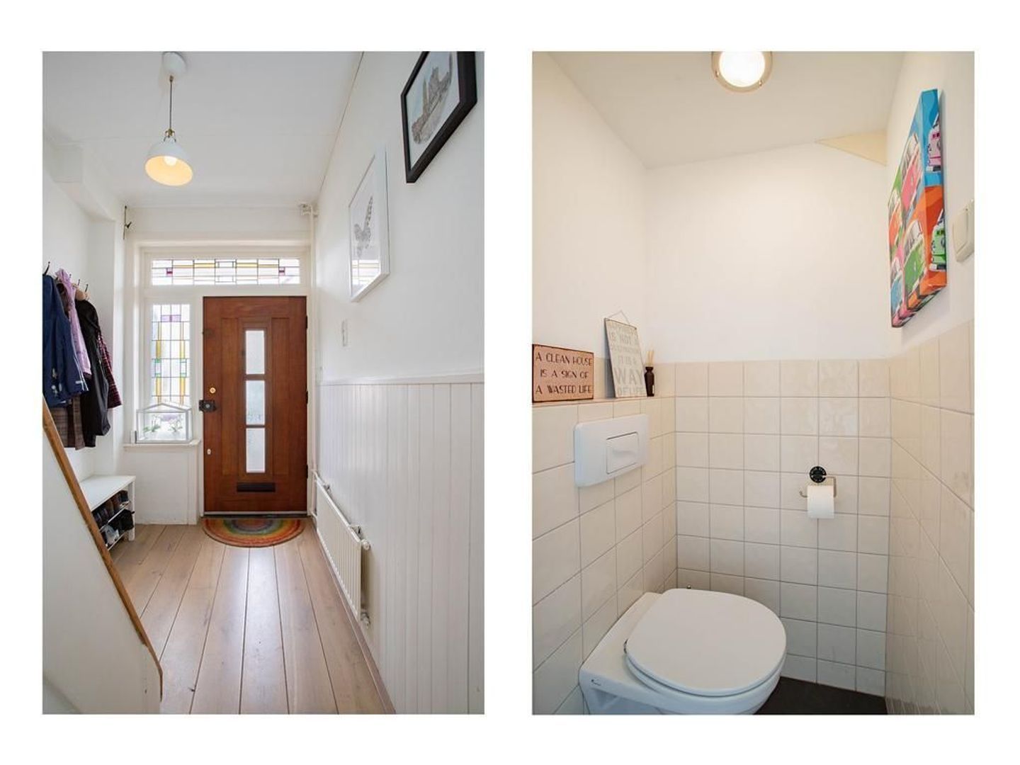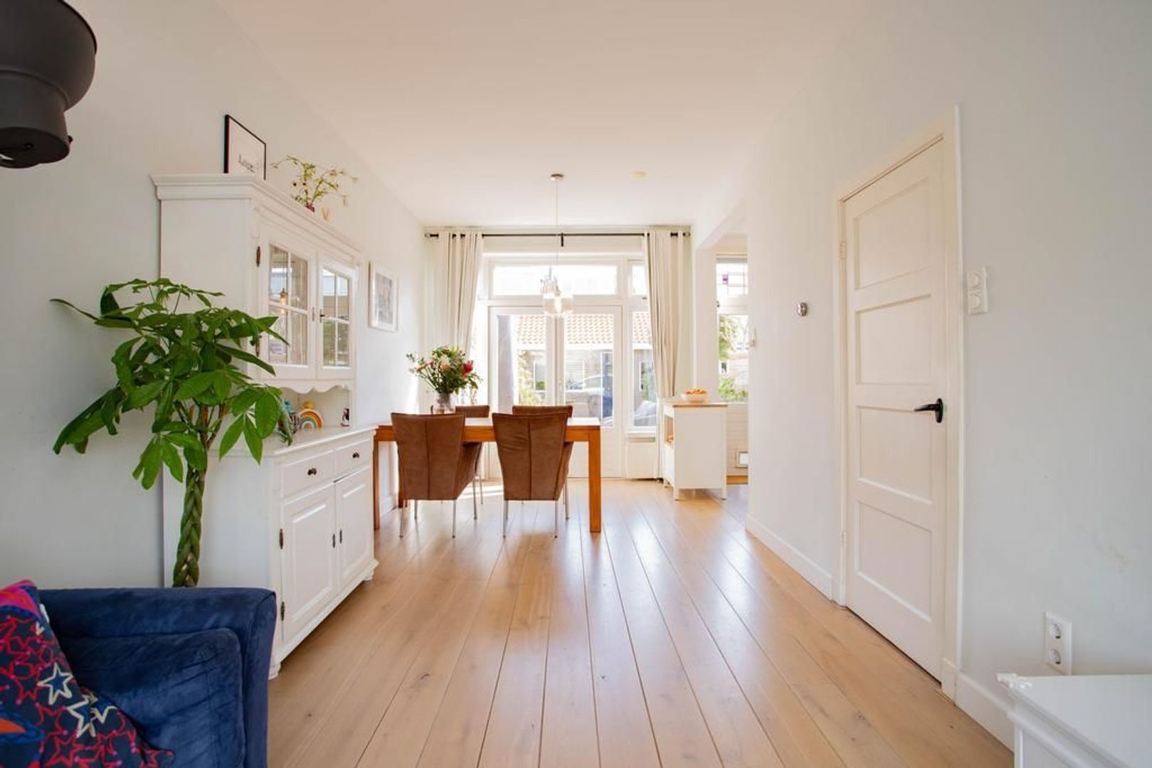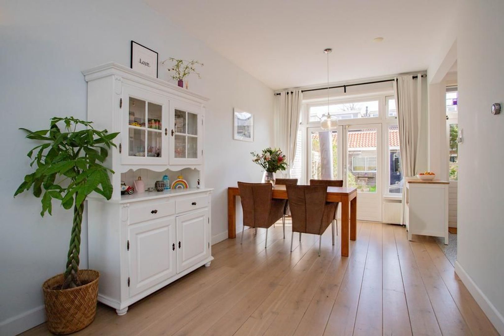 Zodra je de woning betreedt vallen de authentiek details direct op, zo is de entree voorzien van sfeervolle glas-in-lood ramen. Via de entree betreedt je de hal, met separaat toilet, inbouwkast, trapopgang en toegang tot de woonkamer. De fijne woonkamer is aan de voorzijde van de woning gelegen. De woonkamer is voorzien van een sfeervolle erker. Naast dat de erker sfeer geeft aan de woonkamer, voorziet de erker de woonkamer ook van extra ruimte. Aangrenzend aan de woonkamer is de eetkamer gelegen. De eetkamer is ruim van formaat, met voldoende ruimte voor het plaatsen van een ruime eettafel.
