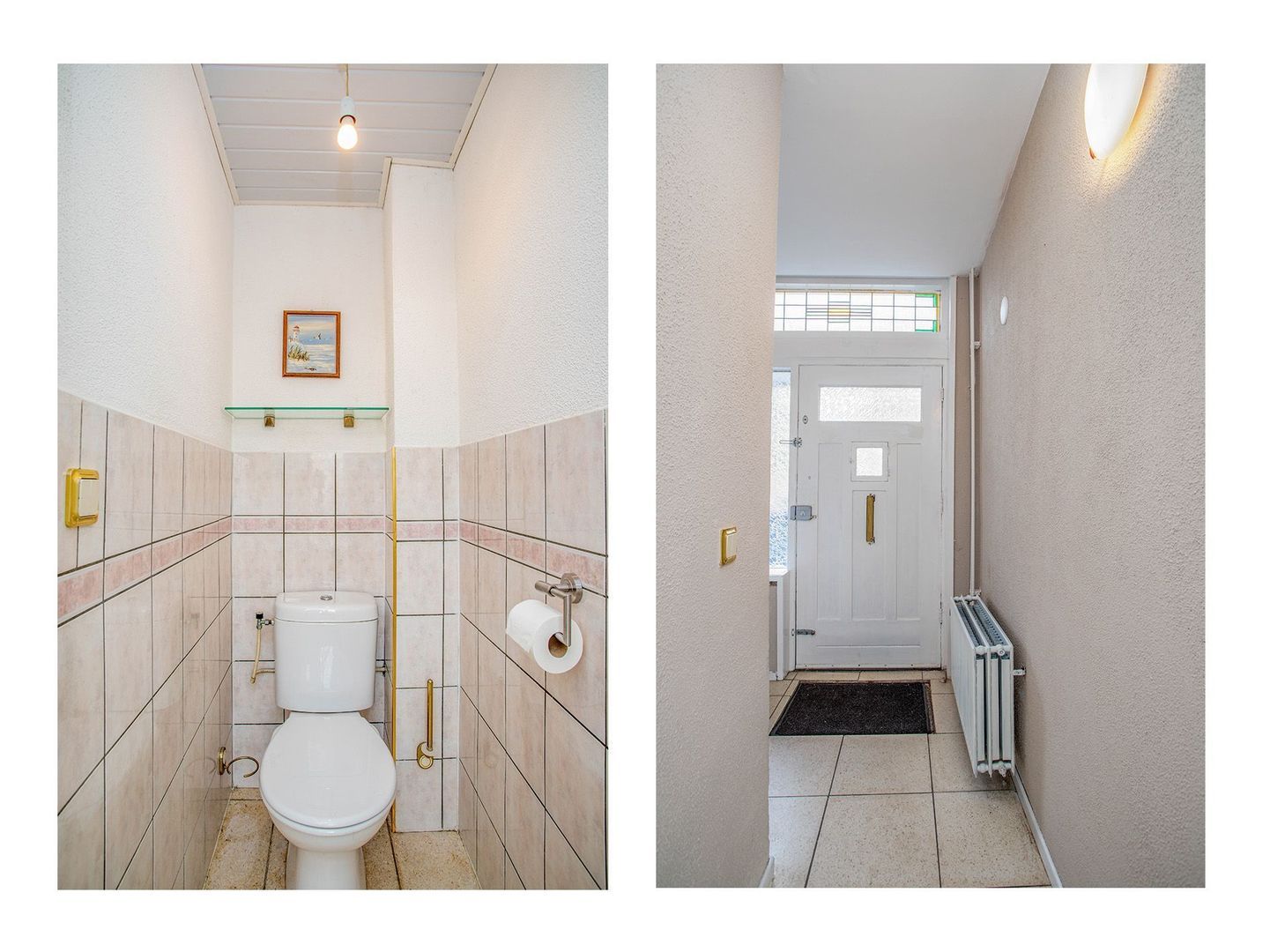 Je betreedt de woning via je eigen voortuin. De voorzijde van de woning heeft een karakteristieke uitstraling dankzij het gebruik van glas-in-loodramen. Bij binnenkomst kom je in de hal, die toegang biedt tot het toilet en de eetkamer. De gehele benedenverdieping is voorzien van vloerverwarming. De deur links bij binnenkomst in de eetkamer geeft toegang tot de woonkamer, die ook als slaapkamer kan worden gebruikt. In deze ruimte kun je een gezellige zithoek creëren, wat zorgt voor een fijne leefruimte. De eetkamer, die momenteel als eet- en woonkamer wordt gebruikt, is perfect voor een lange eettafel, waar je in combinatie met de open keuken heerlijk kunt koken en dineren. De keuken is gedateerd en moet gemoderniseerd worden, maar is van alle gemakken voorzien, zoals een oven, afzuigkap, koelkast en vriezer. Via de keuken bereik je de tuin, die een ideale zonligging op het zuidoosten heeft. De ruime tuin biedt veel mogelijkheden en achterin bevindt zich een stenen berging. In de eetkamer bevindt zich een open trap waarmee je de eerste verdieping bereikt.