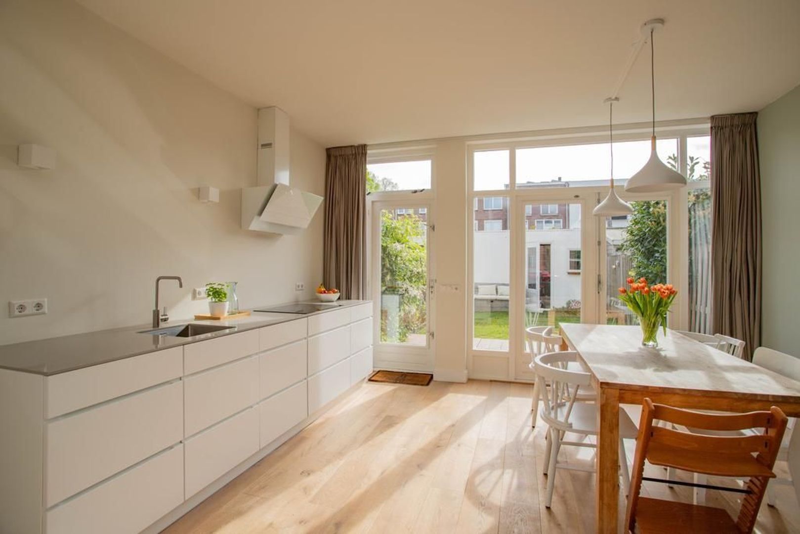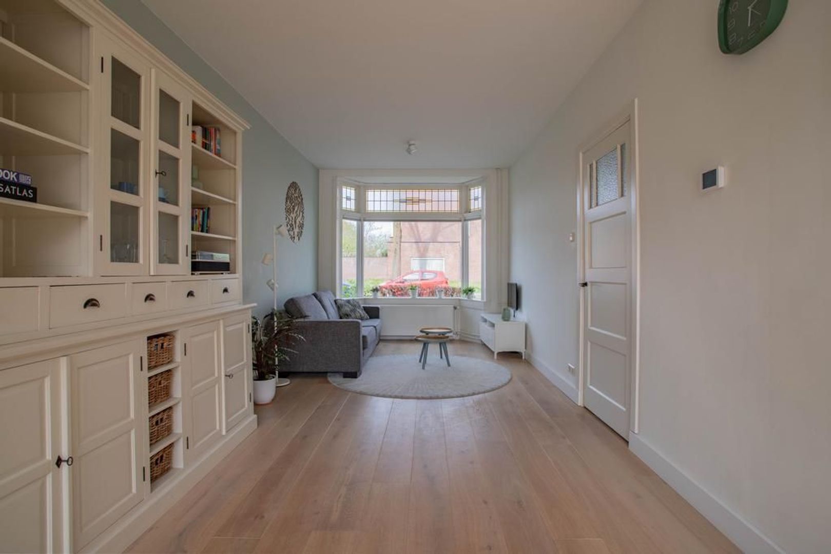 Via de hal betreed je de woning. De karakteristieke entree is voorzien van de kenmerkende glas-in-loodramen die de sfeer en authenticiteit van de woning onderstrepen. Vanuit de hal, waar ook het toilet gesitueerd is, kom je in de lichte woonkamer met een sierlijke houten vloer en charmante details zoals de glas-in-lood ramen in de erker. Door de grote ramen in de erker en openslaande deuren is er een bijzonder aangename lichtinval. De keuken is in 2020 volledig gerenoveerd en van alle gemakken voorzien, inclusief alle wenselijke inbouwapparatuur. Dankzij de minimalistische stijl straalt de keuken rust uit. Vanuit de keuken kijk je uit op de fijne tuin, welke toegankelijk is via de openslaande deuren. De verzorgd aangelegde tuin is voorzien van houten vlonderdelen, vrijstaande berging en achterom. Dankzij de ligging op het zuidoosten is er in de tuin op zonnige dagen altijd een fijn plekje in de zon of schaduw te vinden. Achter in de tuin is de stenen berging gelegen, welke momenteel deels in gebruik is als verzorgde hobbyruimte.