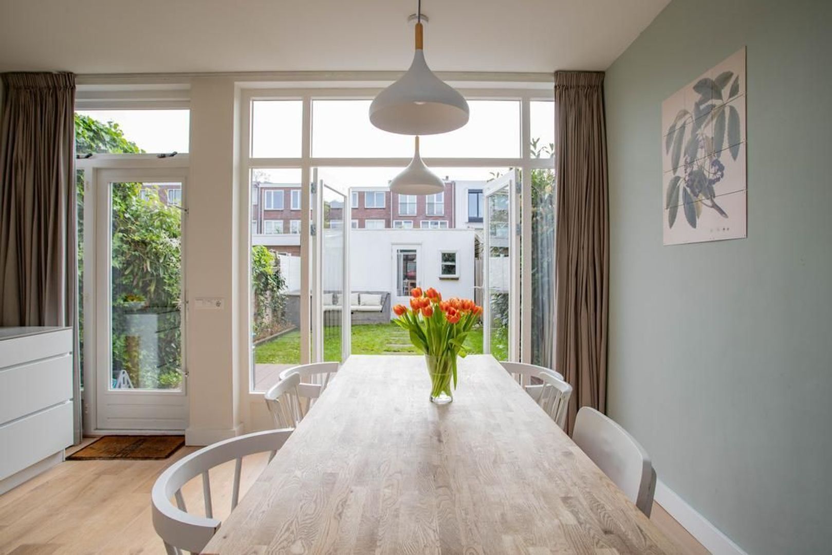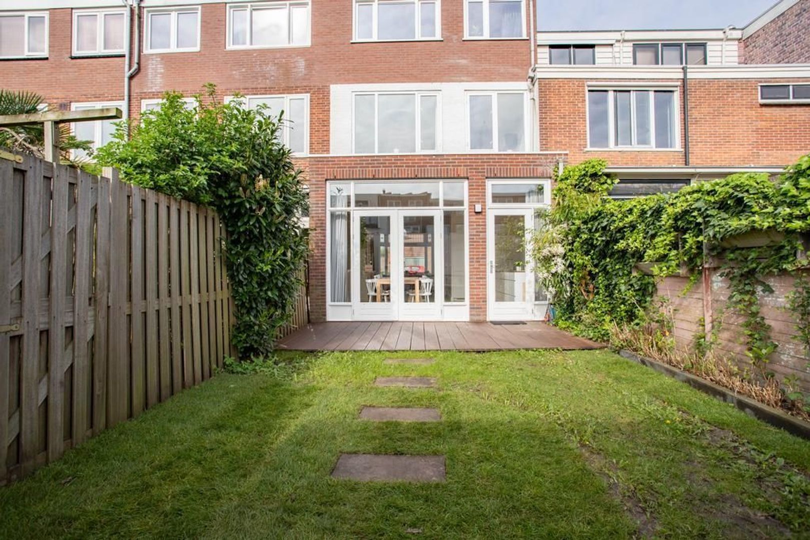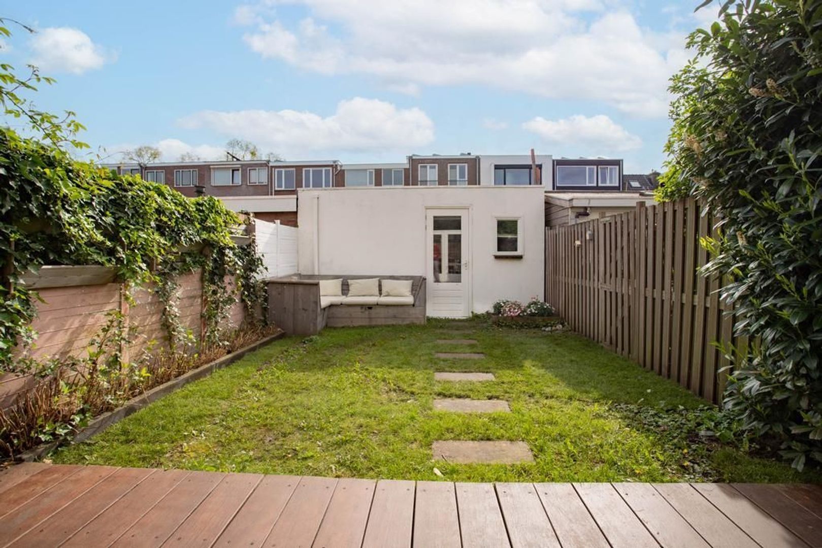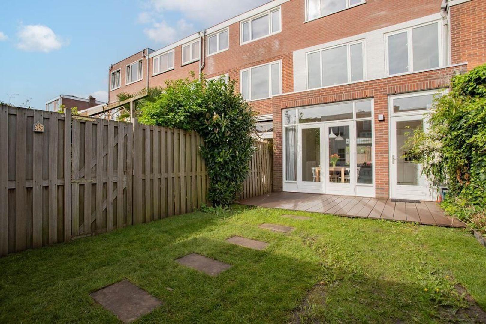 • Voortuin op het westen en de achtertuin op het zuidoosten waardoor er altijd een plek in de zon én schaduw te vinden is (achtertuin voorzien van achterom en berging);