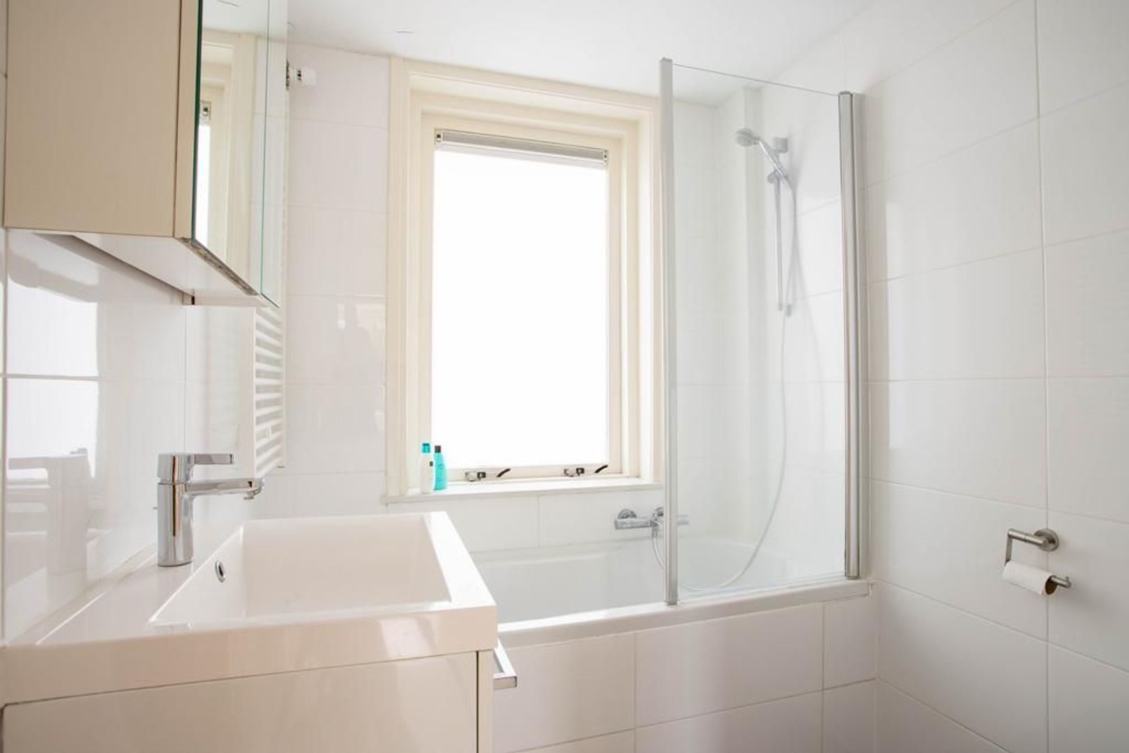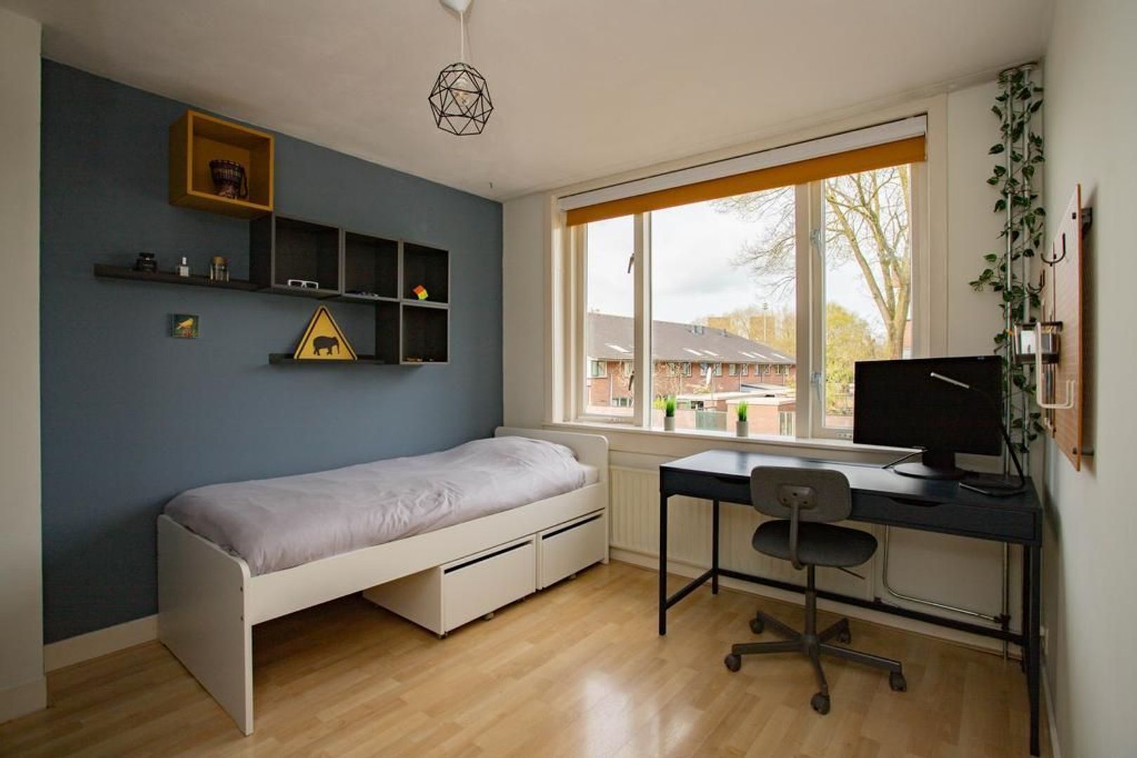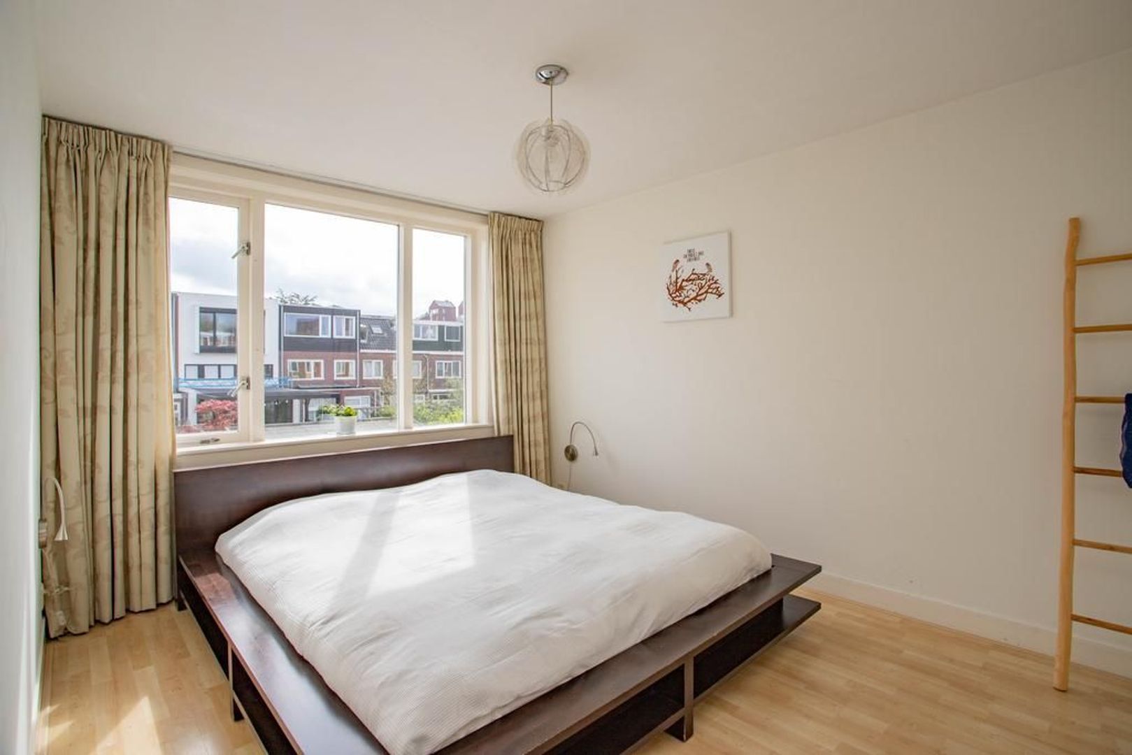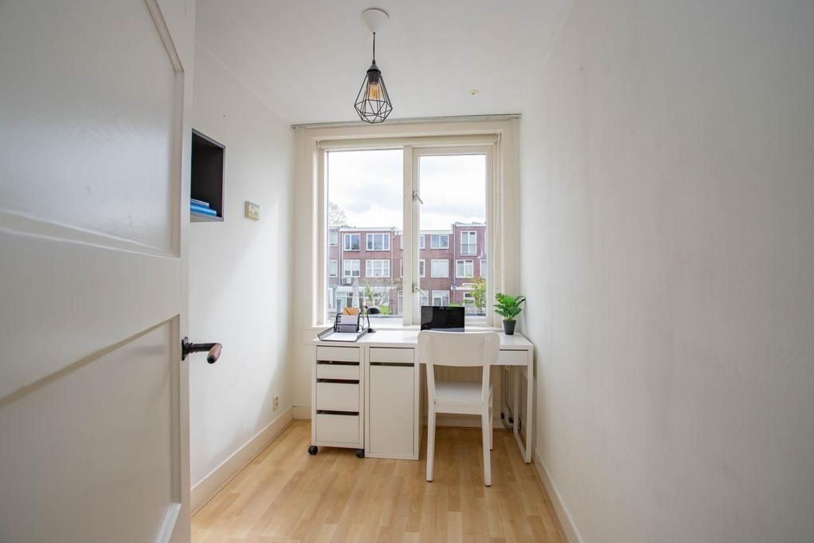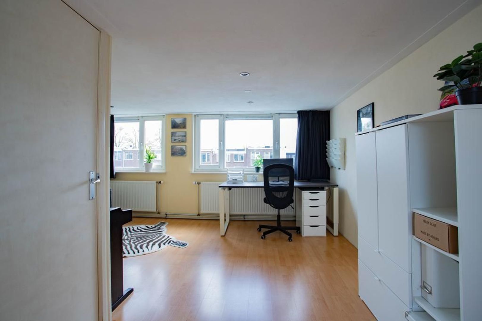 Via de overloop kom je op de eerste verdieping. Hier bevindt zich een badkamer met ligbad, douche, wastafel en een tweede toilet. De grote slaapkamer aan de achterkant heeft een ruime inbouwkast. De andere twee slaapkamers zijn ook van een prettig formaat en kunnen multifunctioneel worden gebruikt. Bijvoorbeeld als slaapkamer, thuiskantoor of kinderkamer.