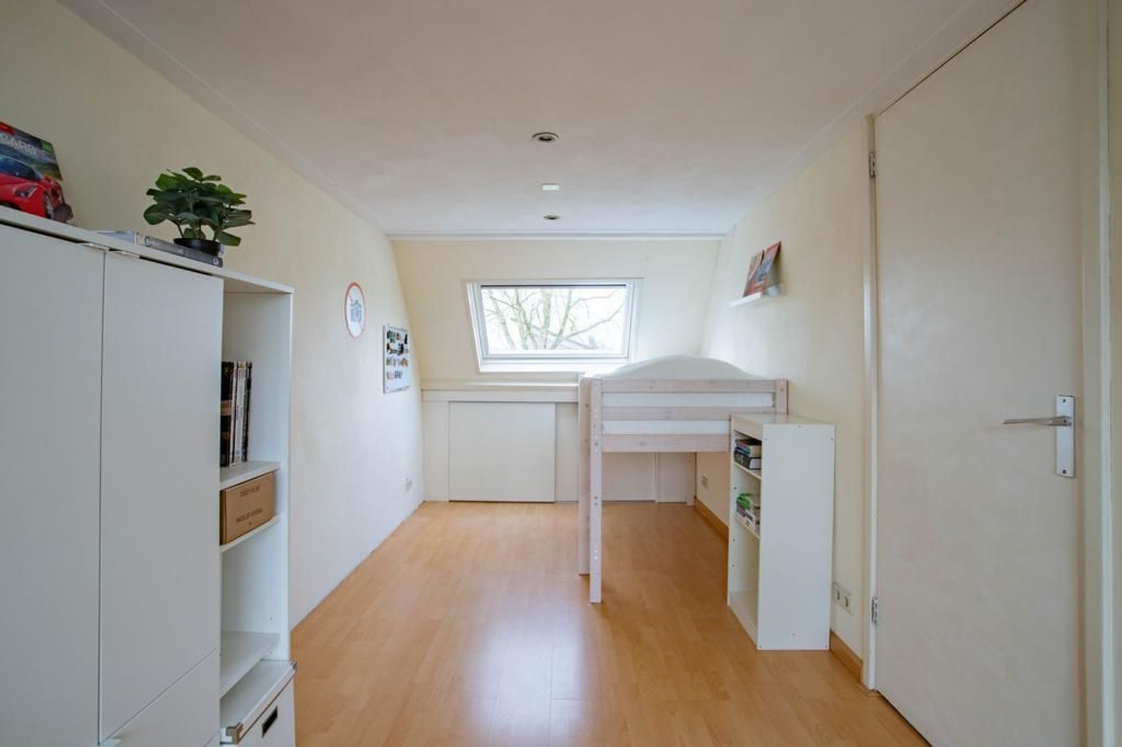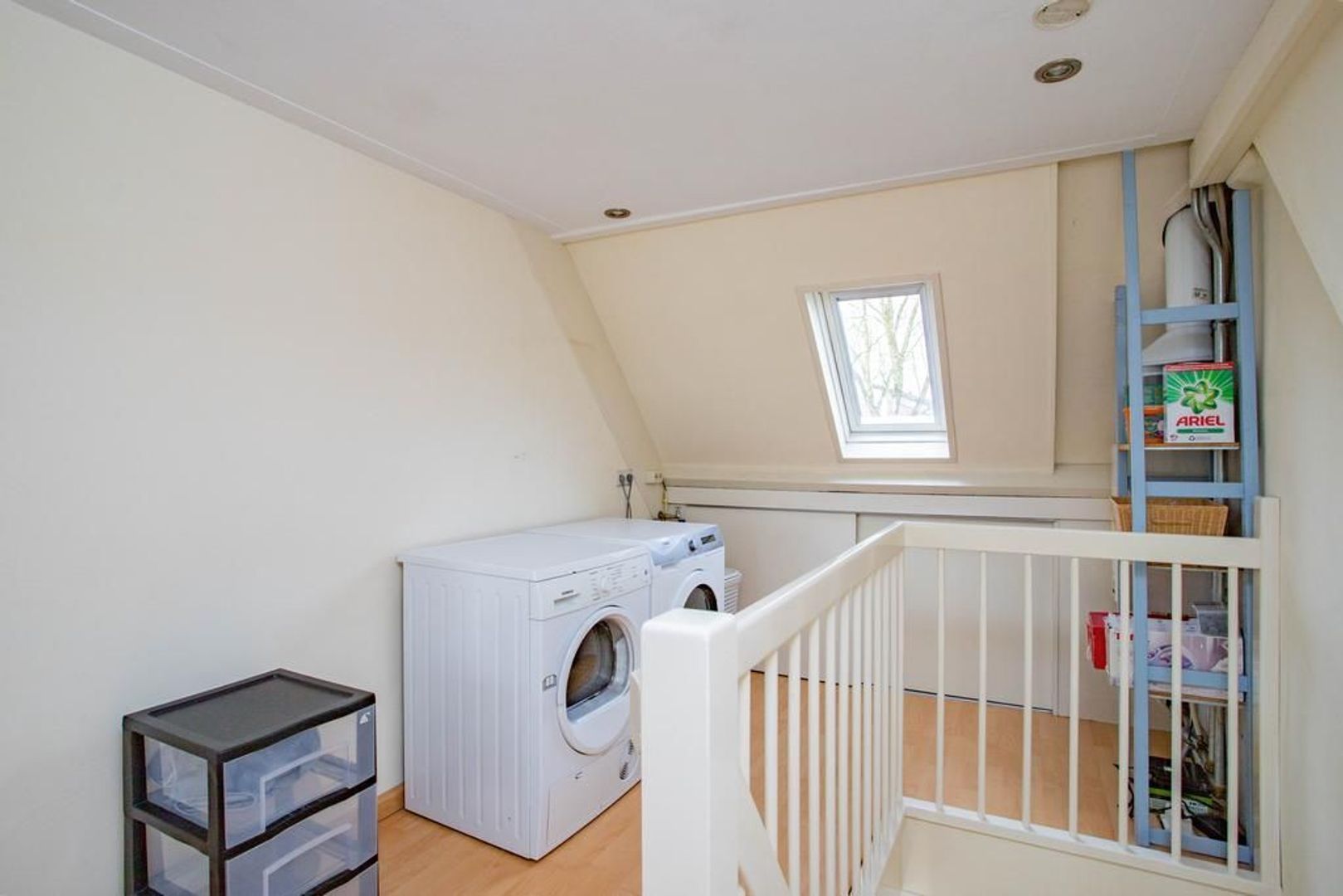 Via de vaste trap kom je op de tweede verdieping. Op de overloop is ruimte voor witgoedapparatuur. Dankzij de dakramen wordt de tweede verdieping voorzien van een fijne lichtinval. Onder de kap zijn knieschotten geplaatst voor extra opbergruimte. De zolder is aan de achterkant over de gehele breedte uitgebouwd. Hierdoor is er enorm veel ruimte. Dit zie je terug in de ruime slaapkamer die zich eenvoudig laat opsplitsen in twee separate kamers.