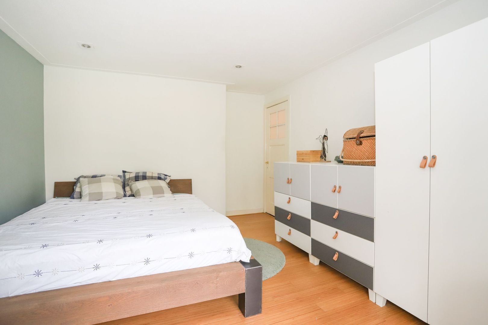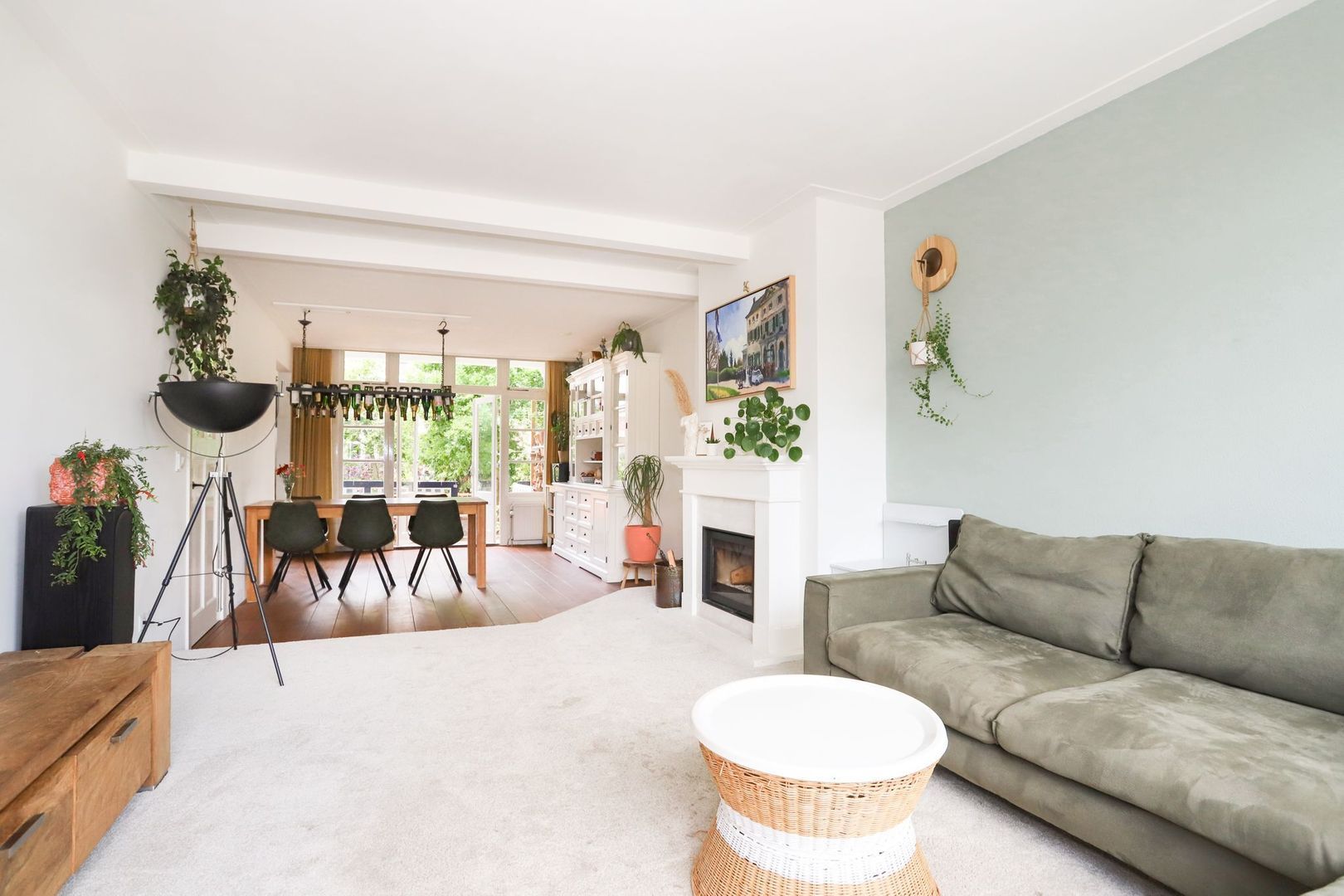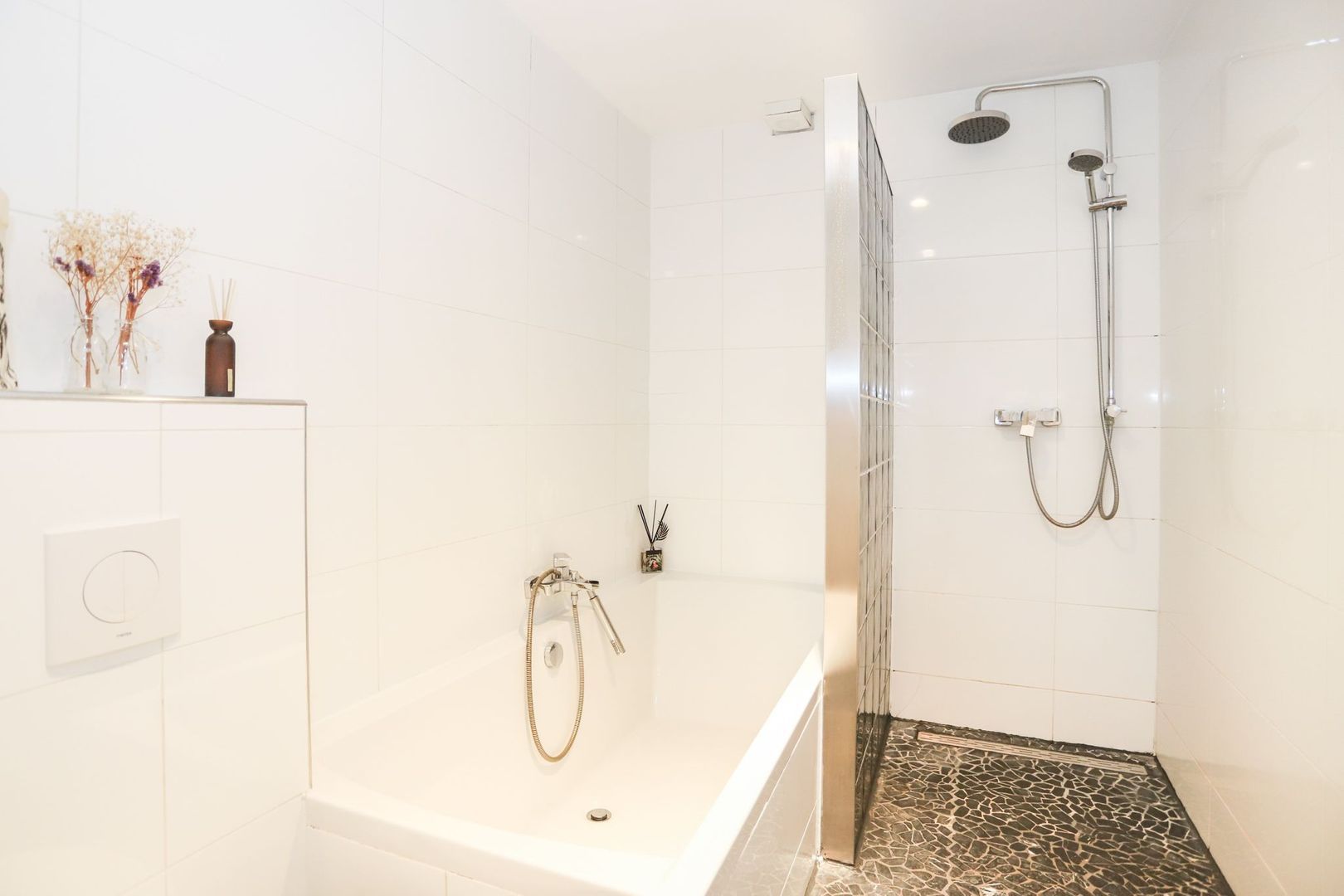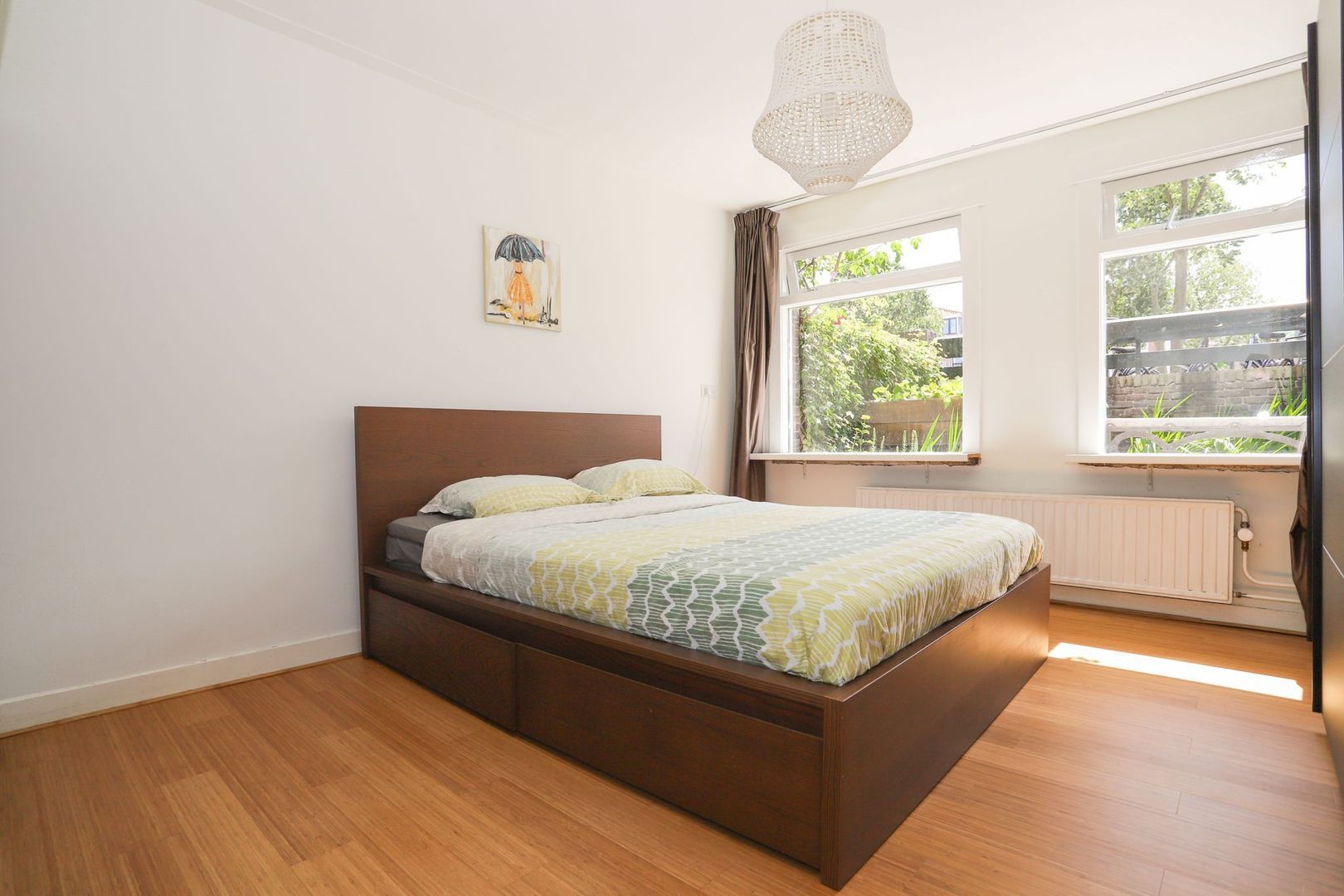 Begane grond: Entree met trappenhuis, bergkast en toilet. De sfeervolle en licht woonkamer is voorzien van een nette houten vloer (geschuurd en geolied in 2019) en een strakke wand afwerking. Aan de voorzijde van de woning is de gezellige en ruime zithoek te vinden met verzorgde vloerbedekking. Gezien de woonkamer hoger dan de straat ligt heb je meer dan voldoende privacy alsmede een fraai uitzicht op de brede stoep. Aan de achterzijde is de royale eethoek te vinden die toegang geeft tot de keuken en het balkon. De keuken is recent op nieuw gewrapt en heeft een moderne en sfeervolle uitstraling. Verder is deze voorzien van een 6-pitsgasfornuis, afzuigkap, oven, koel-vriescombinatie, kokend water kraan en een vaatwasser. Via zowel de deur in de keuken als de openslaande deuren is het terras toegankelijk. Deze is voorzien van een trap die toegang geeft tot de royale achtertuin. De tuin is gelegen op het noorden maar dankzij de diepte van ca. 13 meter is er altijd een plek in de zon én de schaduw te vinden. Verder is die voorzien van verschillende plantenborders, terrassen, een grasveld, bestrating en een berging. Via de tuin is de beneden verdieping te bereiken.