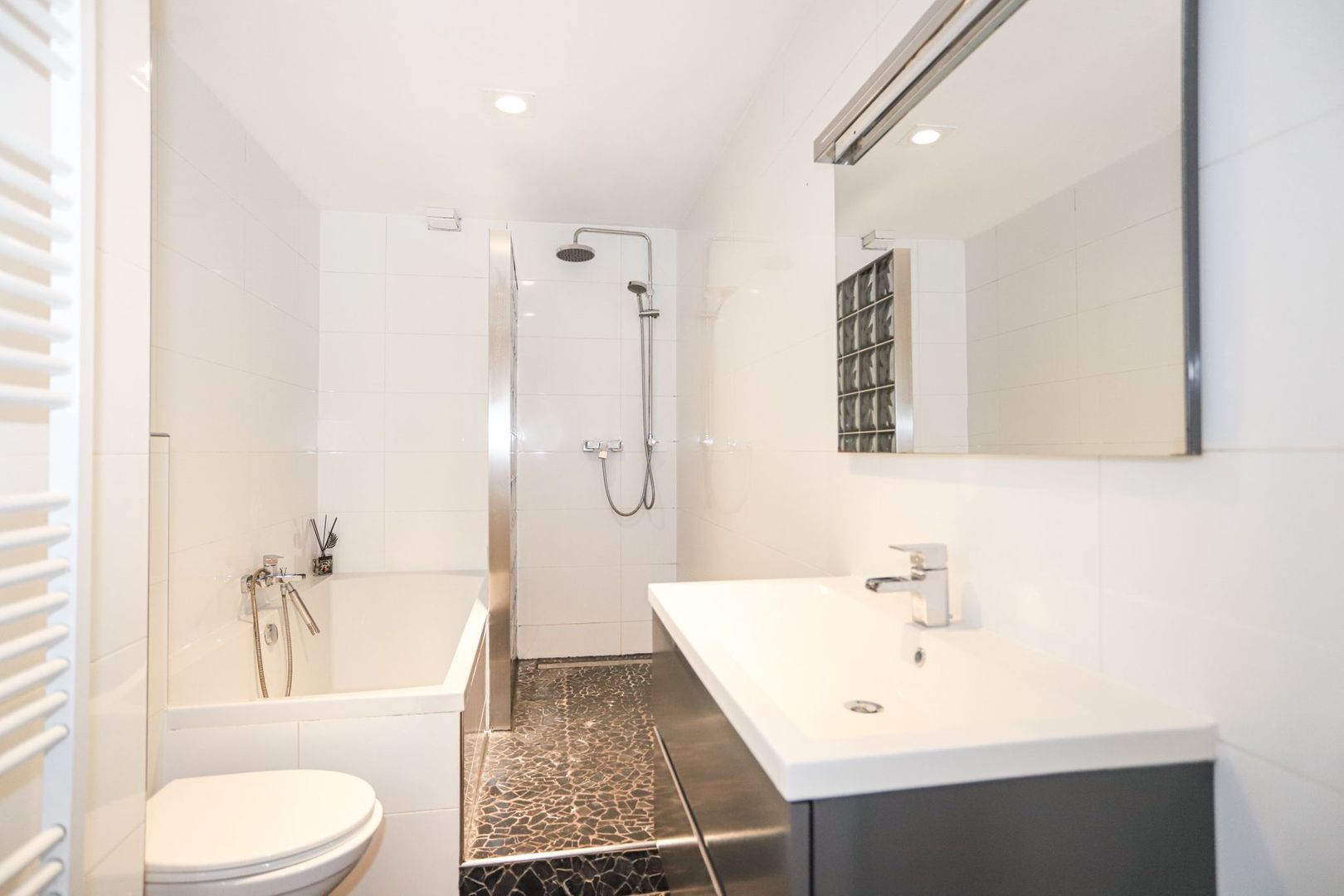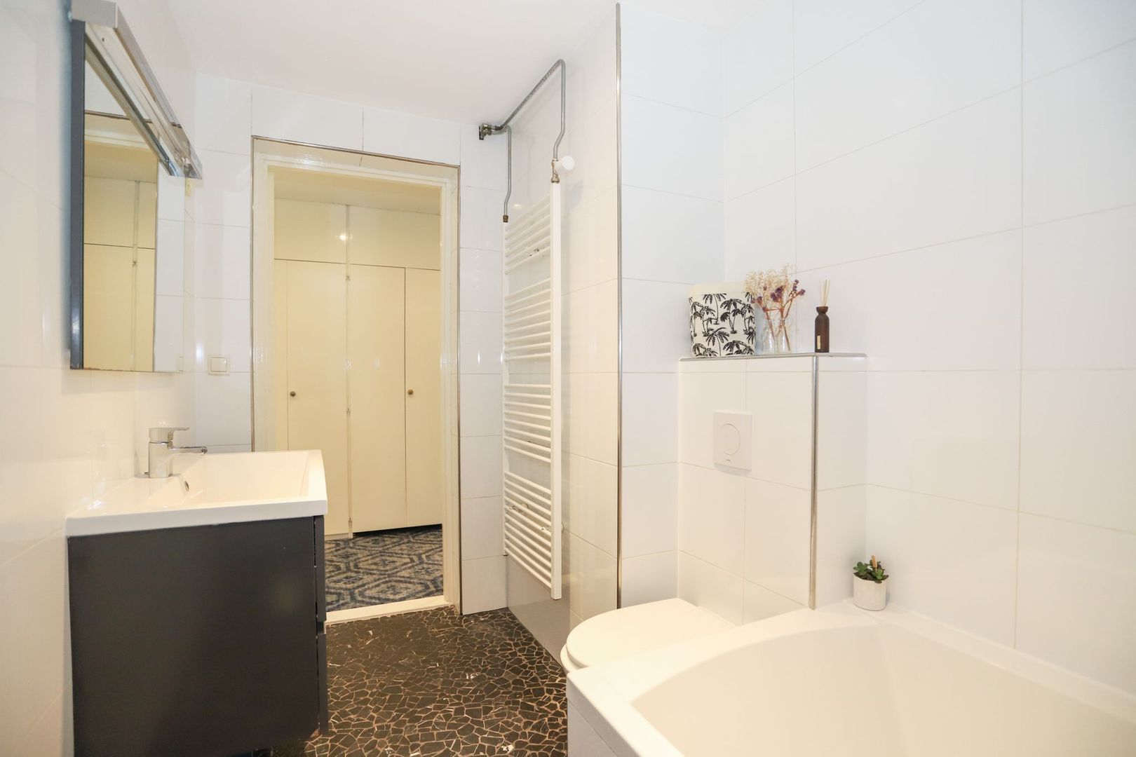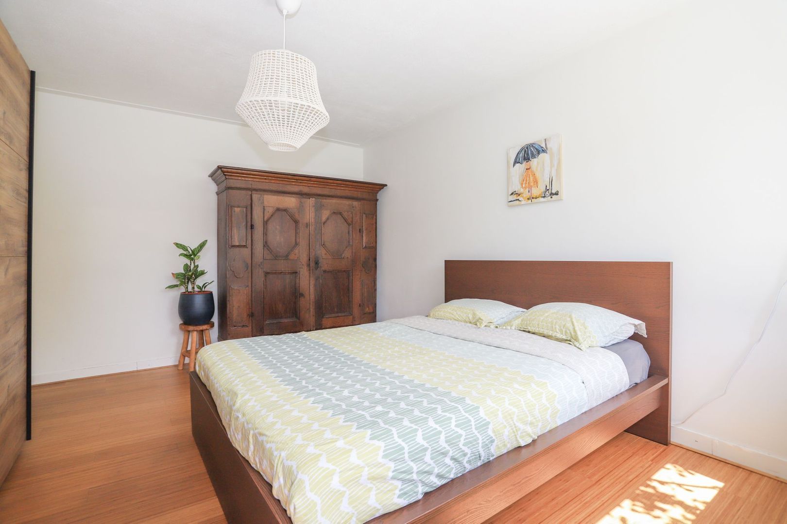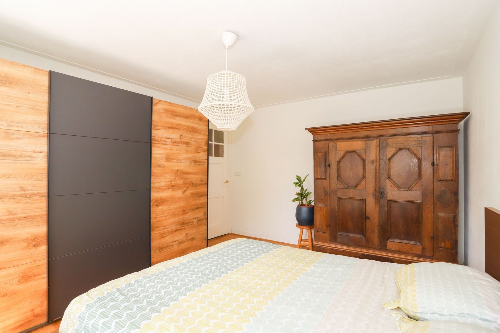 Begane grond: Entree met trappenhuis, bergkast en toilet. De sfeervolle en licht woonkamer is voorzien van een nette houten vloer (geschuurd en geolied in 2019) en een strakke wand afwerking. Aan de voorzijde van de woning is de gezellige en ruime zithoek te vinden met verzorgde vloerbedekking. Gezien de woonkamer hoger dan de straat ligt heb je meer dan voldoende privacy alsmede een fraai uitzicht op de brede stoep. Aan de achterzijde is de royale eethoek te vinden die toegang geeft tot de keuken en het balkon. De keuken is recent op nieuw gewrapt en heeft een moderne en sfeervolle uitstraling. Verder is deze voorzien van een 6-pitsgasfornuis, afzuigkap, oven, koel-vriescombinatie, kokend water kraan en een vaatwasser. Via zowel de deur in de keuken als de openslaande deuren is het terras toegankelijk. Deze is voorzien van een trap die toegang geeft tot de royale achtertuin. De tuin is gelegen op het noorden maar dankzij de diepte van ca. 13 meter is er altijd een plek in de zon én de schaduw te vinden. Verder is die voorzien van verschillende plantenborders, terrassen, een grasveld, bestrating en een berging. Via de tuin is de beneden verdieping te bereiken.