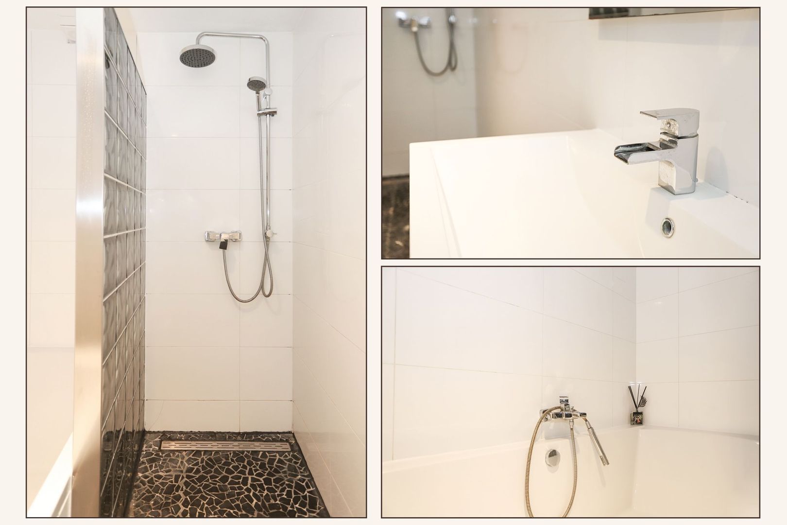 Het souterrain: Via de trap in de hal, de achtertuin en de deur in één van de slaapkamers aan de voorzijde is deze beneden verdieping te bereiken. Op de overloop is er een bergkast en de wasruimte aanwezig. Verder zijn er vier ruime en goed onderhouden slaapkamers aanwezig. De werkkamer die uit kijkt op de achtertuin is voorzien van vloerverwarming. De badkamer is voorzien van modern tegelwerk en is uitgevoerd met een ligbad, inloopdouche, toilet, wastafel met meubel en een design radiator.