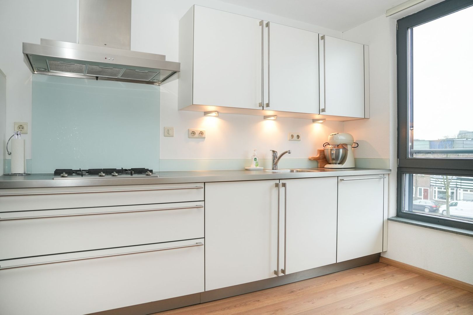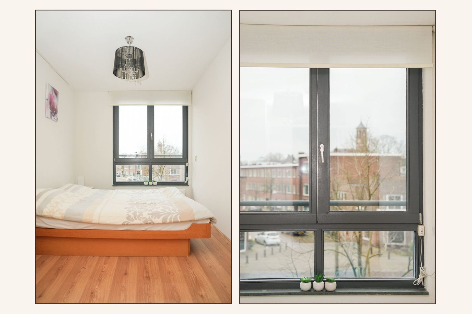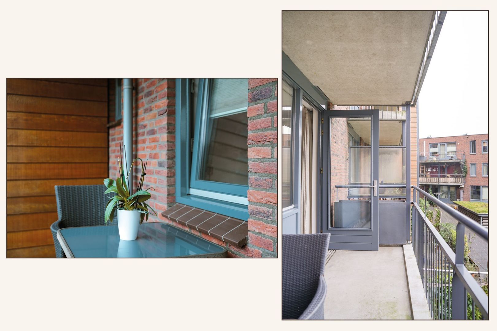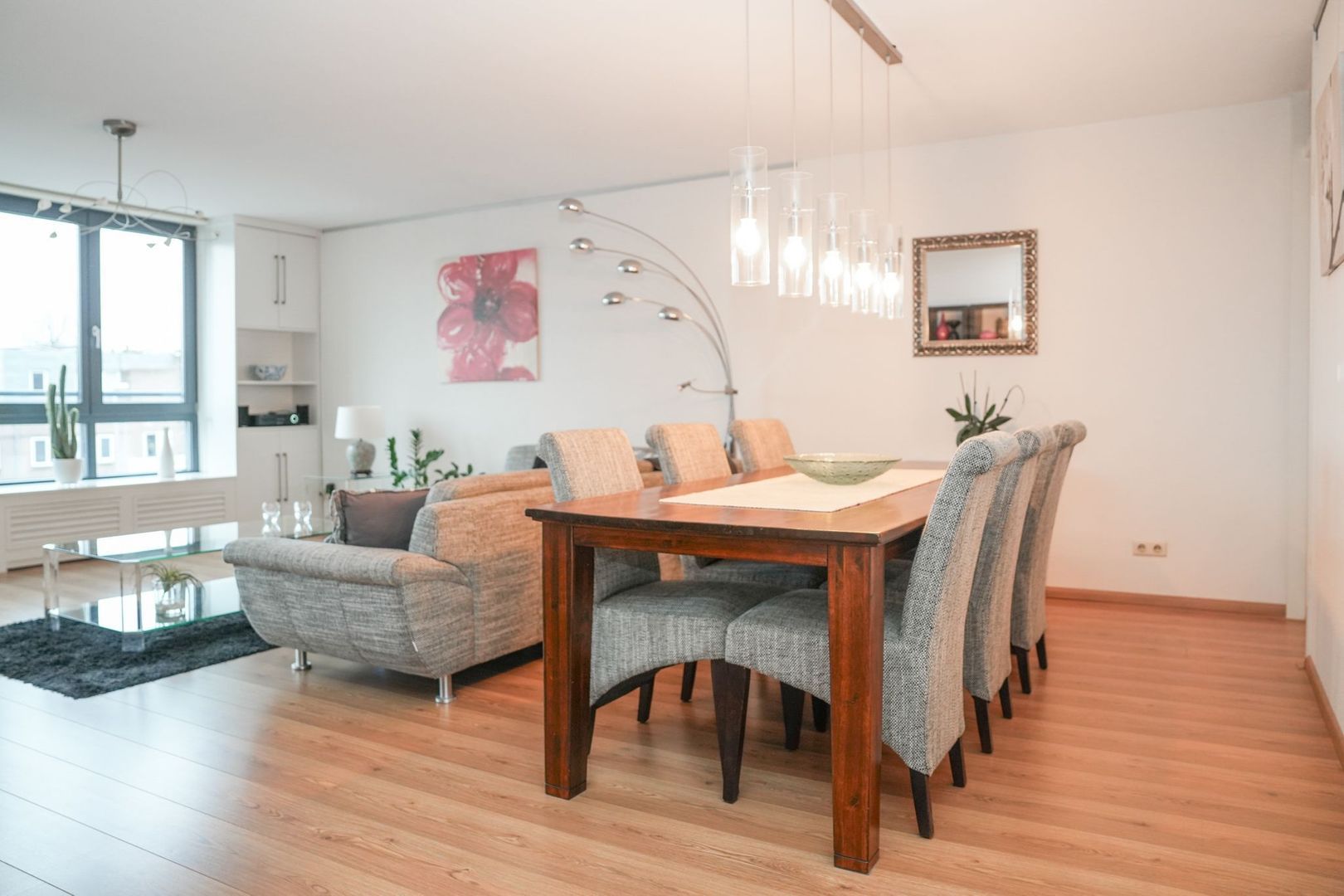 Kenmerkend voor de woonkamer, met open keuken, is de frisse afwerking op wanden, plafonds en vloer. Maar bovenal de grote raampartijen spreken tot de verbeelding. Vanwege de ligging op het zuiden is dit appartement bovengemiddeld licht heeft een fraai uitzicht richting de stad. Alle ramen zijn voorzien van elektrische (zonne)screens. Aan de achterzijde van het appartement is een ruim balkon gelegen dat voorziet in veel privacy en uitzicht op de fraaie gemeenschappelijke binnentuin.