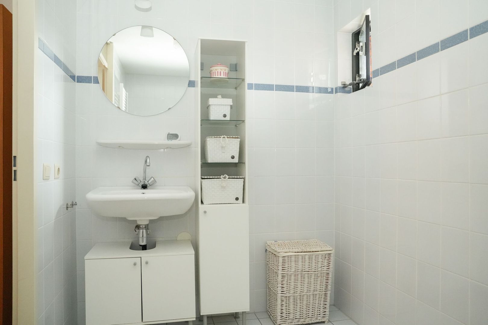 Grenzend aan de keuken is een zeer praktische bijkeuken gesitueerd. Hier zijn tevens de opstelplaats voor de wasmachine/droger en een mogelijkheid weer in de centrale hal te geraken. Vanuit de centrale hal zijn de twee overige slaapkamers bereikbaar alsmede het toilet, inloop/garderobekast en badkamer. De badkamer is voorzien van een inloopdouche en wastafel.