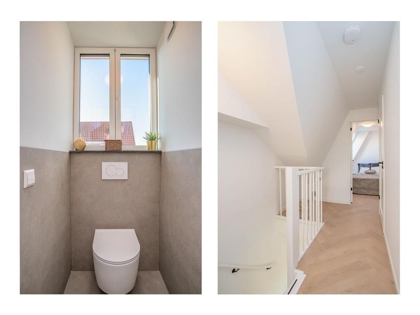 De overloop biedt toegang tot twee comfortabele slaapkamers, de badkamer en het separate toilet. Beide slaapkamers zijn van een fijn formaat en bieden voldoende ruimte voor een bed en een bureau. De badkamer is praktisch ingedeeld met een douche met deur en een wastafel met wastafelmeubel, waardoor alles goed bereikbaar is en er een fijne sfeer heerst.