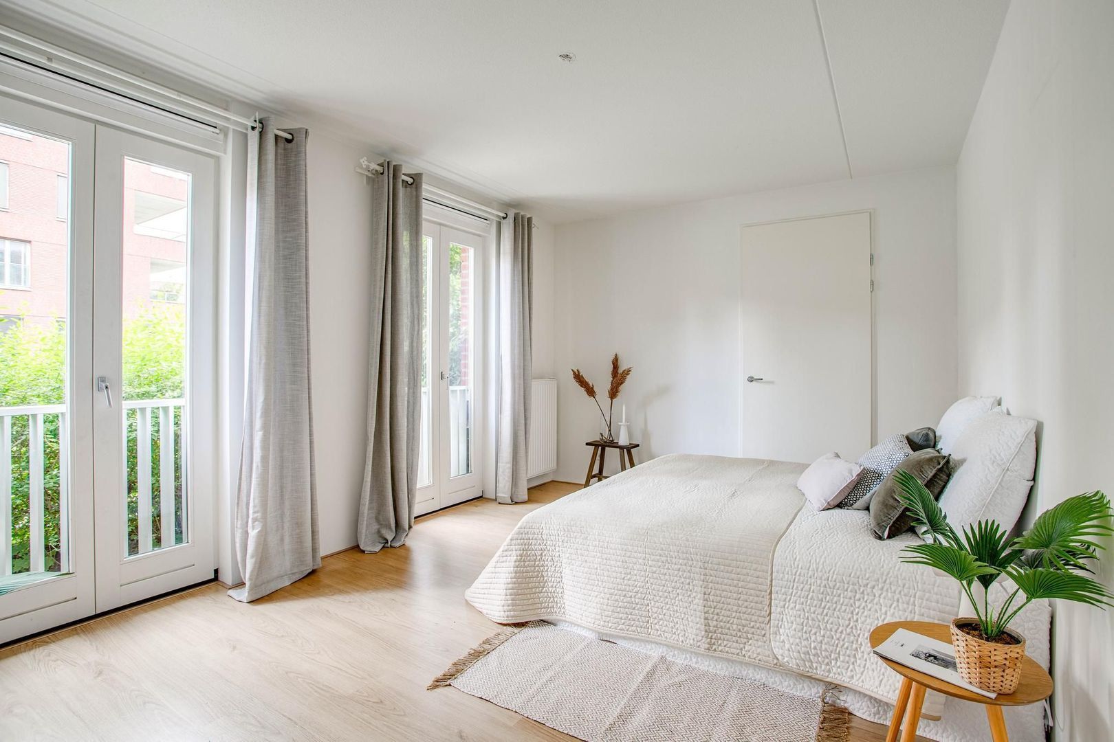 Het appartement beschikt over twee slaapkamers. Beide slaapkamers hebben een fijn formaat en zijn voorzien van een frans balkon. De grote slaapkamer geeft toegang tot een ruime inpandige inloopkast/berging. Dit is de ideale plek voor het opbergen van spullen.