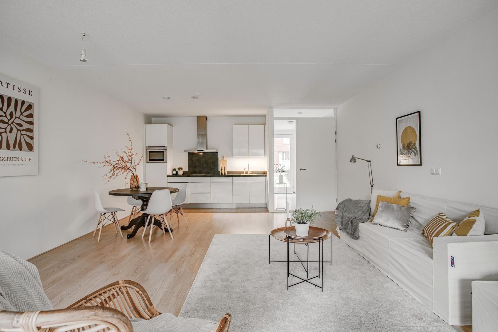 Je komt de woning via je eigen entree binnen. In de hal bevindt zich een garderobe, een meterkast en een separaat toilet. De hal geeft toegang tot de woon- en eetkamer, badkamer en verschillende vertrekken. De woonkamer heeft een ruime opzet en voor het creëren van een gezellige zit- en eethoek is ruim voldoende plek. De open keuken grenst aan de woon- en eetkamer. De keuken heeft een moderne uitstraling en is voorzien van het volgende inbouwapparatuur: inductiekookplaat, afzuigkap, vaatwasser, combi-oven en koelkast met vriesvak.