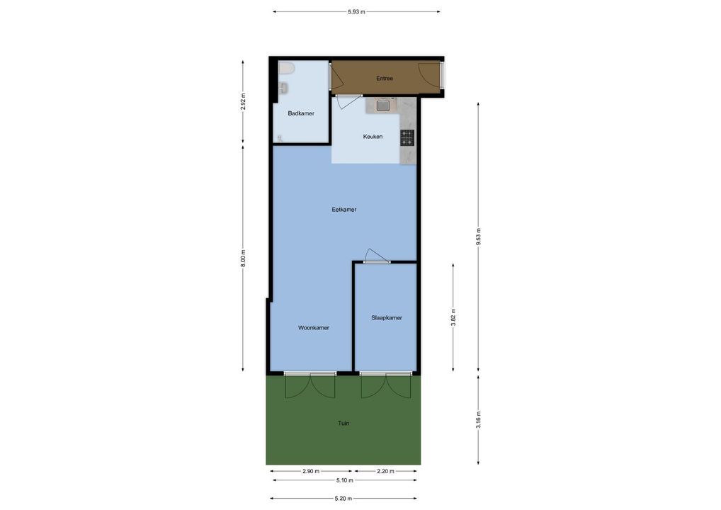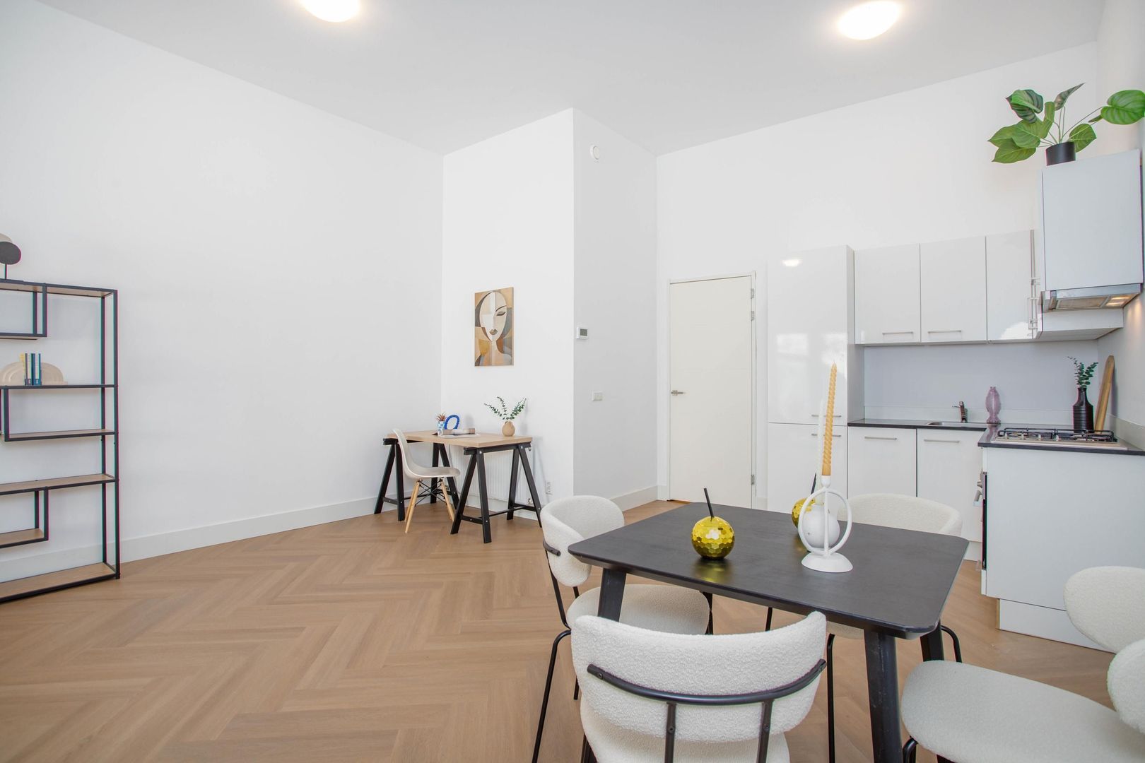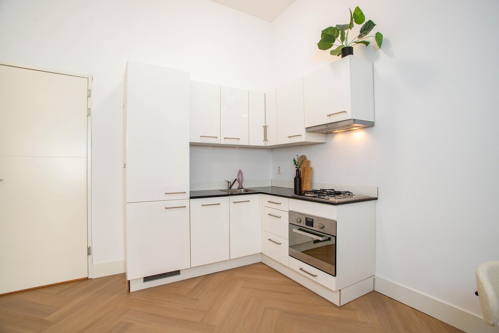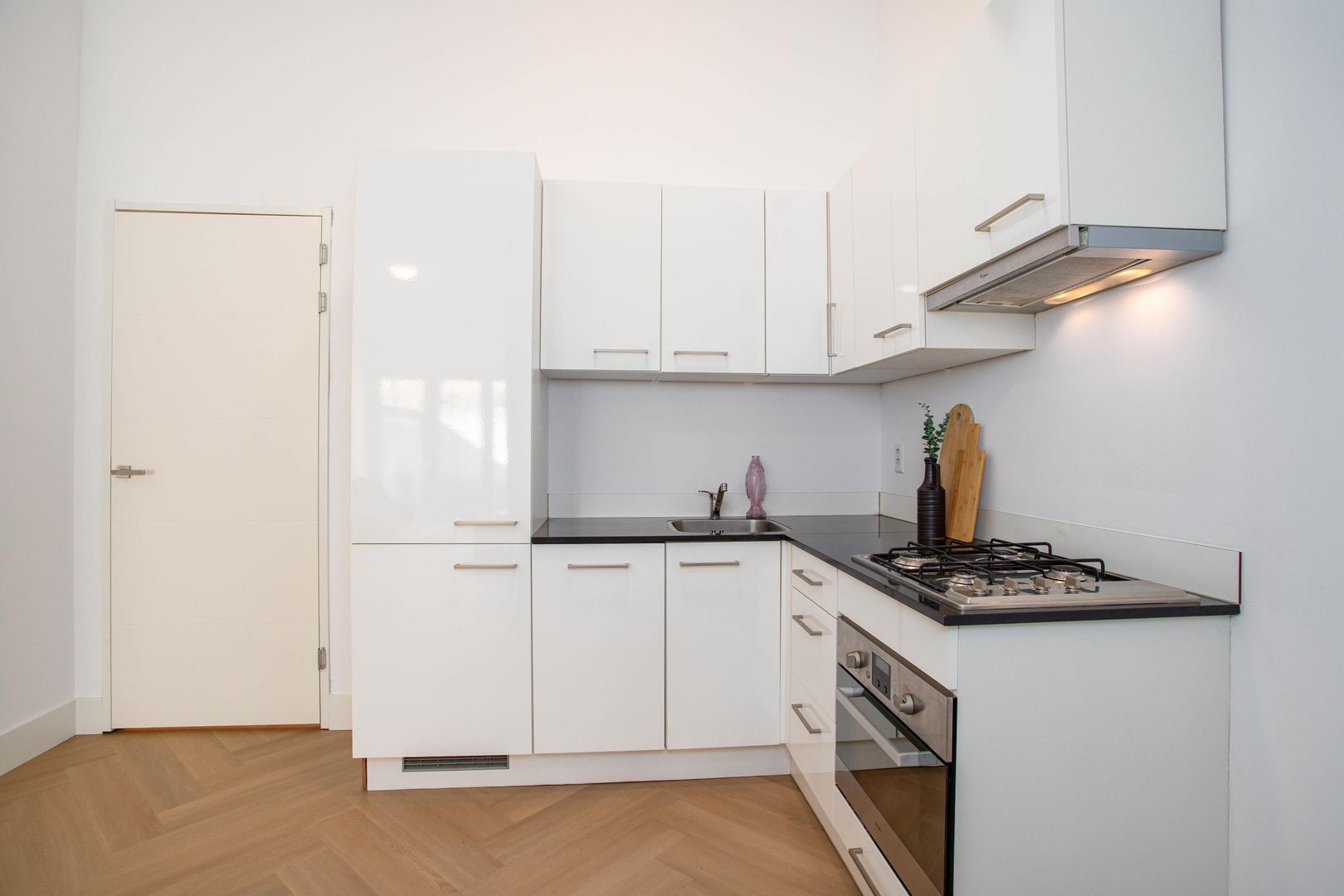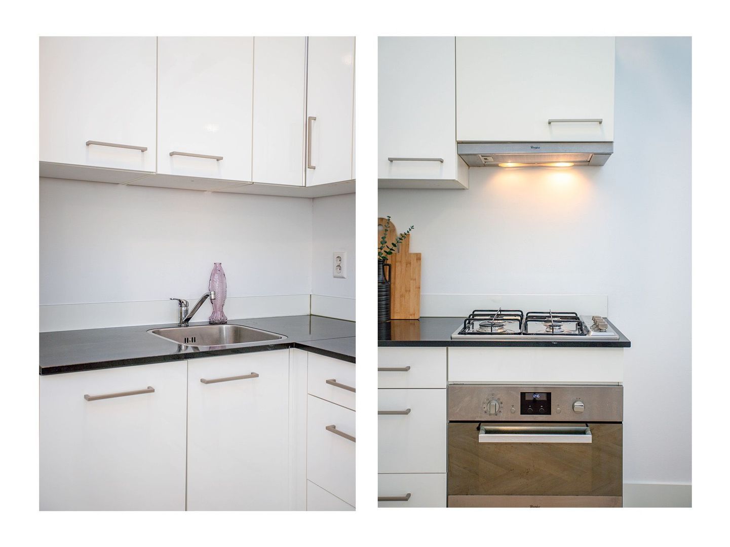 Je betreedt de woning via de gezamenlijke entree, die toegang geeft tot de eigen voordeur. De entree van het appartement leidt naar de keuken/woonkamer en de badkamer. De woonkamer is zeer ruim en kan op verschillende manieren worden ingedeeld. De hoge plafonds dragen extra bij aan een ruimtelijk gevoel. Vanuit de woonkamer heb je toegang tot de gezellige en lichte slaapkamer. De open keuken heeft een strakke afwerking en is voorzien van de volgende inbouwapparatuur: koelkast, vriezer, combi-oven, gasfornuis, afzuigkap en vaatwasser. De badkamer beschikt over een douche, wastafel met wastafelmeubel en toilet. De woning is geheel voorzien van een frisse afwerking op de wanden en het plafond, en heeft een nieuwe PVC-vloer in visgraatmotief. Zowel de woonkamer als de slaapkamer hebben openslaande deuren naar de tuin. In de warme maanden fungeert de tuin als een verlenging van de leefruimte, waar je kunt genieten van de buitenlucht en de zon. Door de ligging aan de achterzijde van het complex heerst er in de woning én de tuin een oase van rust.