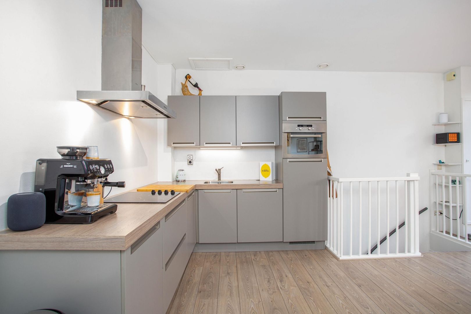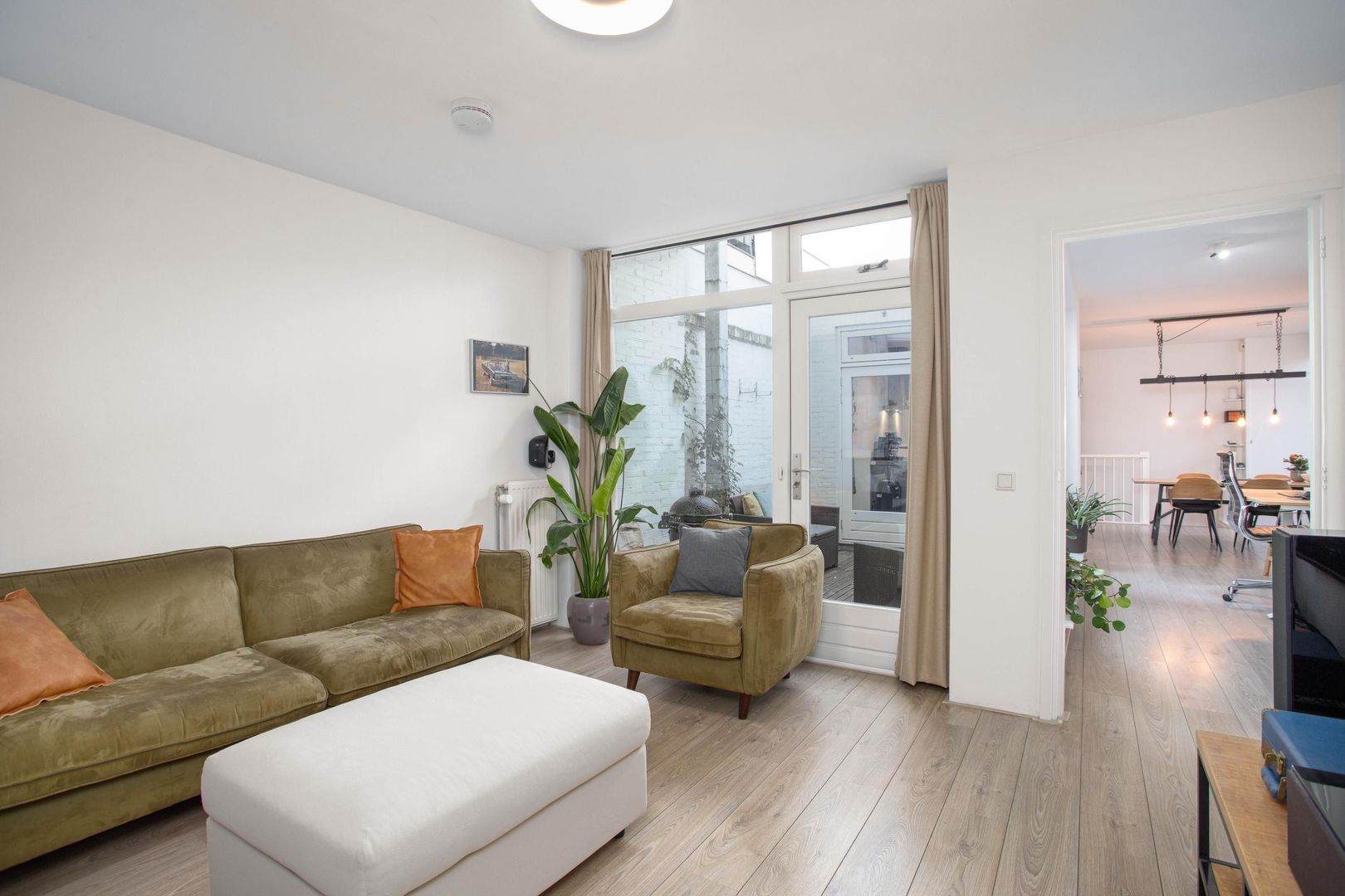 De benedenwoning beschikt over een bijzondere indeling waarbij de indeling het meest doet denken aan een loft. Via de gemeenschappelijke gang kom je in het achterhuis waar het appartement is gevestigd. In het appartement kom je binnen in de living die is voorzien van grote raampartijen in de gevel en patio, welke zorgen voor veel lichtinval. De open keuken is modern uitgevoerd en voorzien van inbouwapparatuur. De ‘ruimte’ tussen de living en de zitkamer is groot genoeg om bijvoorbeeld een werkhoek te creëren. De verschillende ruimtes zijn mooi in balans.