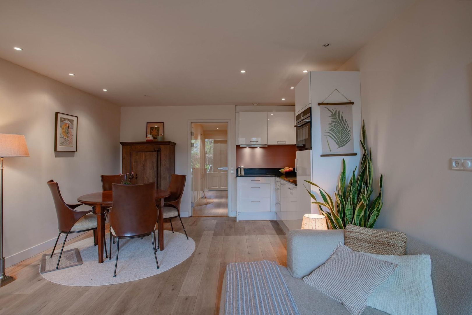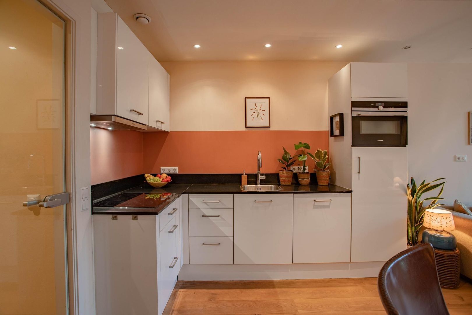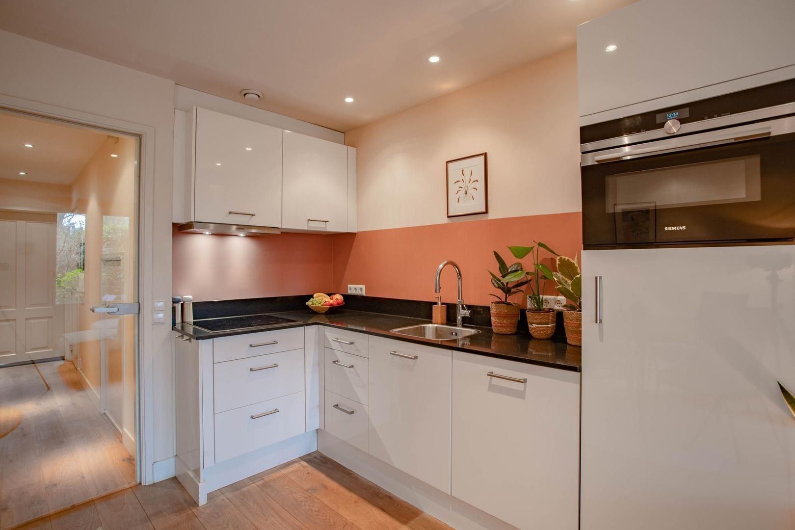 Je komt binnen in de centrale entree waarna je de voordeur bereikt van je eigen woning. Hal met separaat toilet, inbouwkast en toegang tot alle ruimtes in de woning. Vanuit de hal kom je in de woonkamer met open keuken. De woonkamer is ruim van formaat en heeft een hoogwaardige wand- en vloerafwerking. In de woonkamer is voldoende ruimte voor het creëren van een sfeervolle zithoek en gezellige eethoek. De keuken heeft een moderne uitstraling en is voorzien van hoogwaardige inbouwapparatuur. De keuken is voorzien van een inductiekookplaat, combi-oven, vaatwasser, koel-vriescombinatie, afzuigkap en Quooker kraan. Via de openslaande deuren is de tuin toegankelijk. De tuin is verzorgd aangelegd en gelegen op het noordoosten. In de tuin kan je genieten van de eind ochtend en middagzon. In de gemeenschappelijke tuin bevindt zich een vrijstaande stenen berging die voorzien is van elektra. In de tuinen is altijd een fijn plekje in de zon en in de schaduw te vinden. De woning beschikt over één slaapkamer, deze is aan de voorzijde van de woning gelegen. De slaapkamer is ruim van formaat en voorzien van een grote kastenwand. In de slaapkamer is voldoende ruimte voor het plaatsen van een tweepersoonsbed en het creëren van een (thuis)werkplek. De badkamer is verzorgd en voorzien van een inloopdouche, wastafel met wastafelmeubel en opstelplaats voor de wasmachine en droger.