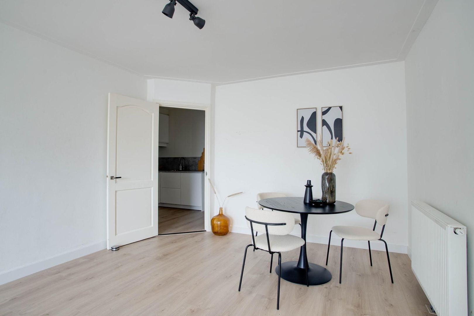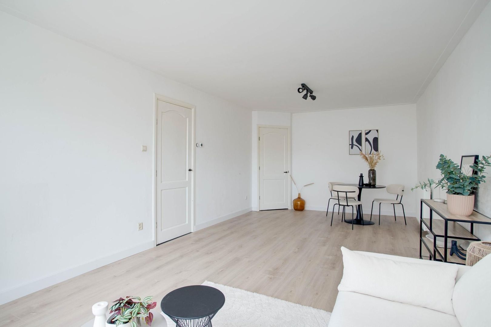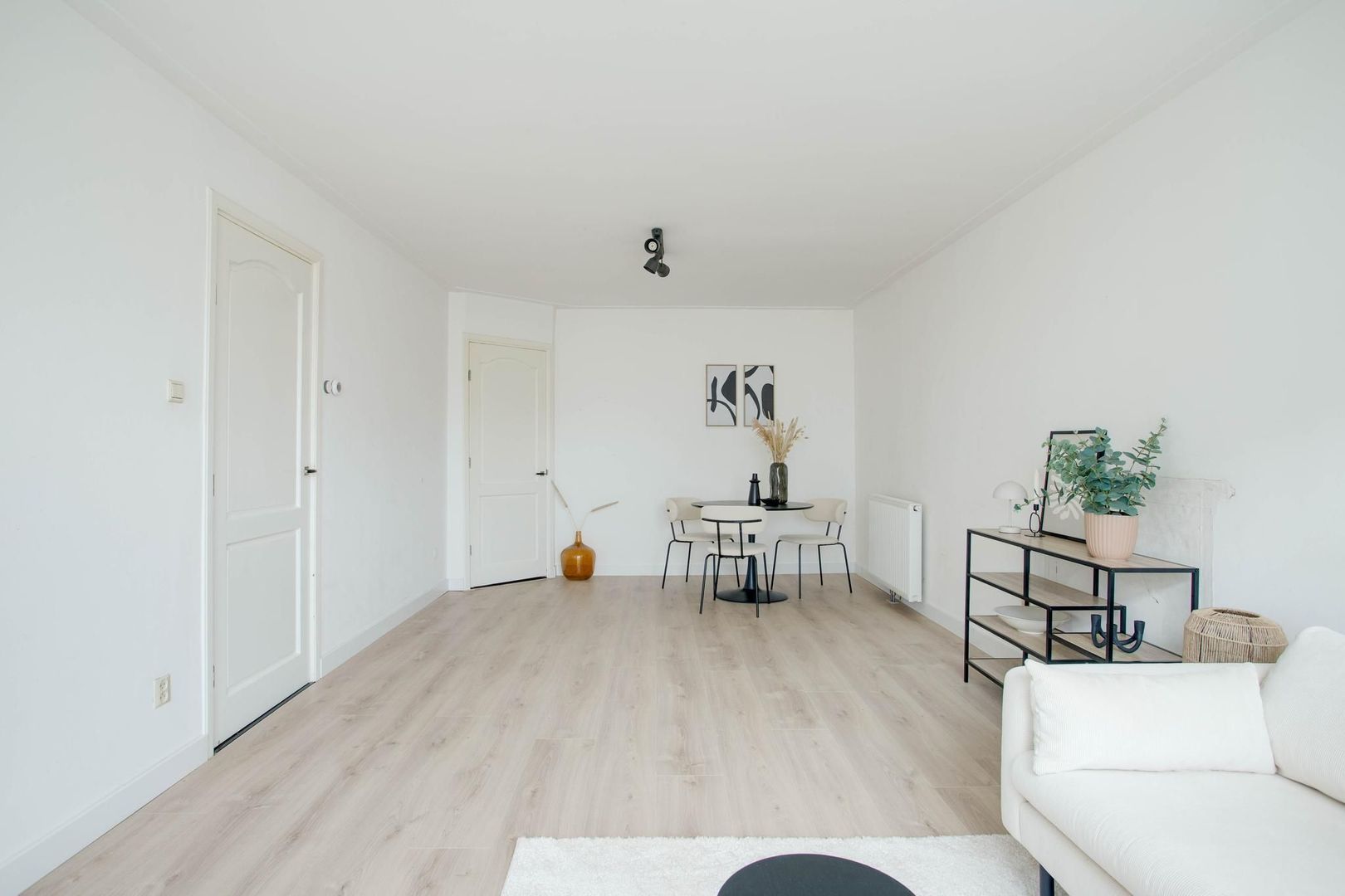 Je komt binnen in de hal, die voorzien is van een meterkast. De hal geeft toegang tot de woonkamer. De woning kenmerkt zich door de verzorgde en moderne staat van afwerking. Zo zijn de wanden voorzien van strak stuc werk en de vloer een laminaat vloer. De woonkamer is aan de voorzijde van de woning gelegen en heeft dankzij de grote raampartij een fijne daglichtinval. De ruimte laat diverse inrichtingsmogelijkheden vrij, zo is er ruim voldoende plek voor het creëren van een gezellige zithoek en een royale eethoek.
