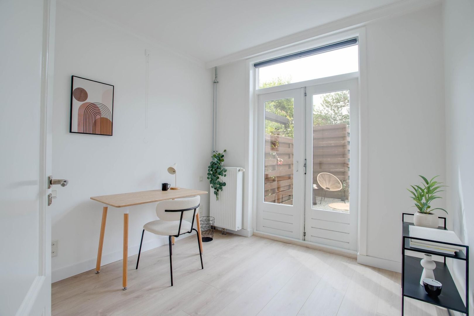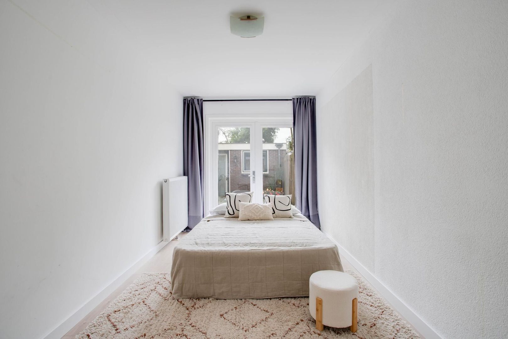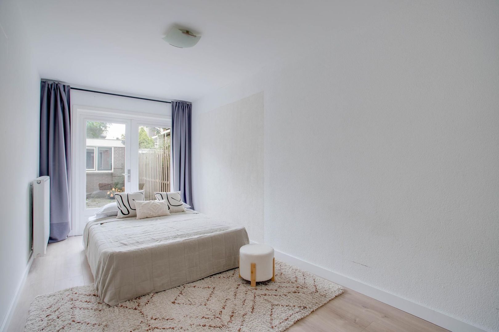 Naast dat de keuken toegang geeft tot de badkamer geeft de keuken ook toegang tot twee slaapkamers. Beide slaapkamers zijn aan de achterzijde van de woning gelegen en grenzen aan de tuin. De eerste slaapkamer is van ruim formaat en biedt de mogelijkheid voor het creëren van een fijne slaapkamer. De tweede slaapkamer heeft een fijn formaat en geeft toegang tot de trap naar de eerste verdieping. Deze ruimte leent zich uitstekend voor het creëren van een thuiswerkplek, hobbykamer of speelkamer.