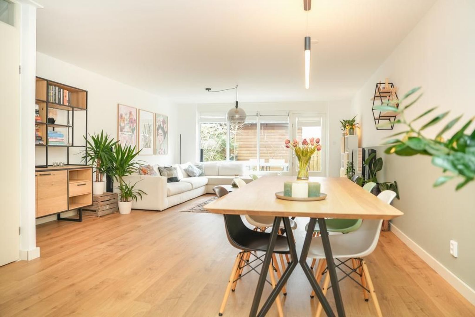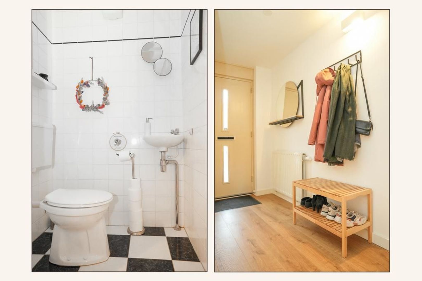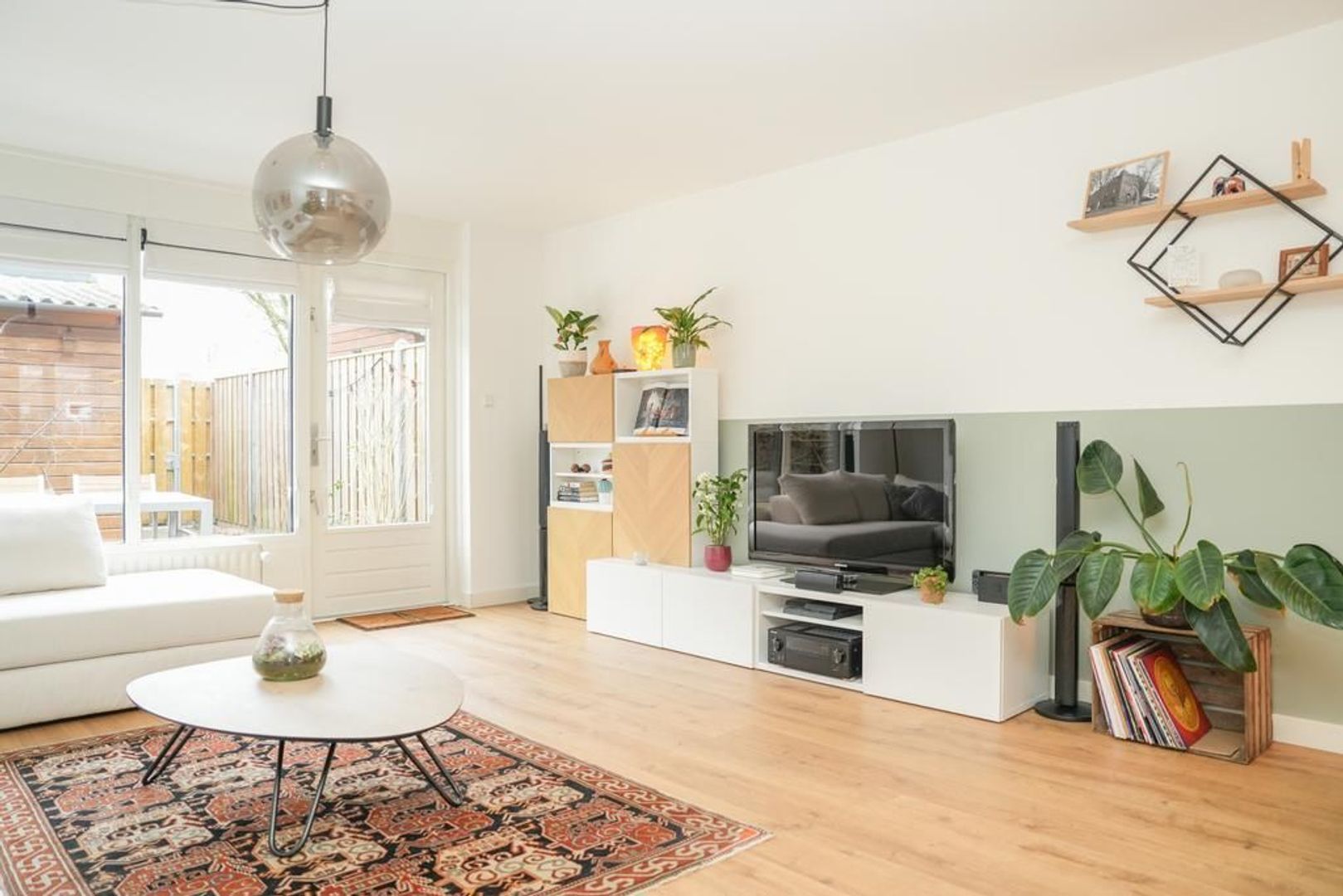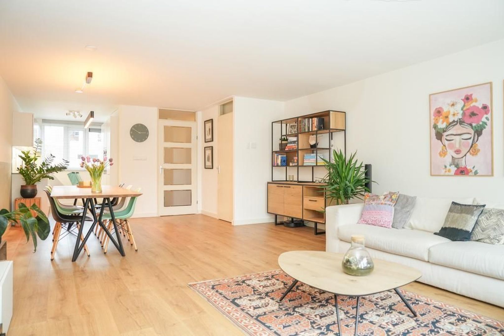 Entree met separaat toilet, trapopgang en meterkast. Via de hal bereik je de sfeervolle maar ruime doorzon woonkamer. Doordat de woonkamer over de gehele breedte van de woning is gelegen, ontstaat er een riante en tuingerichte zithoek. De ruimte kenmerkt zich door de zeer nette staat van afwerking. In 2021 is de woonkamer voorzien van een nieuwe laminaat vloer en zijn de muren en plafonds opnieuw gestuct en geschilderd en geeft toegang tot de zonnige achtertuin die is voorzien van een berging en achterom.