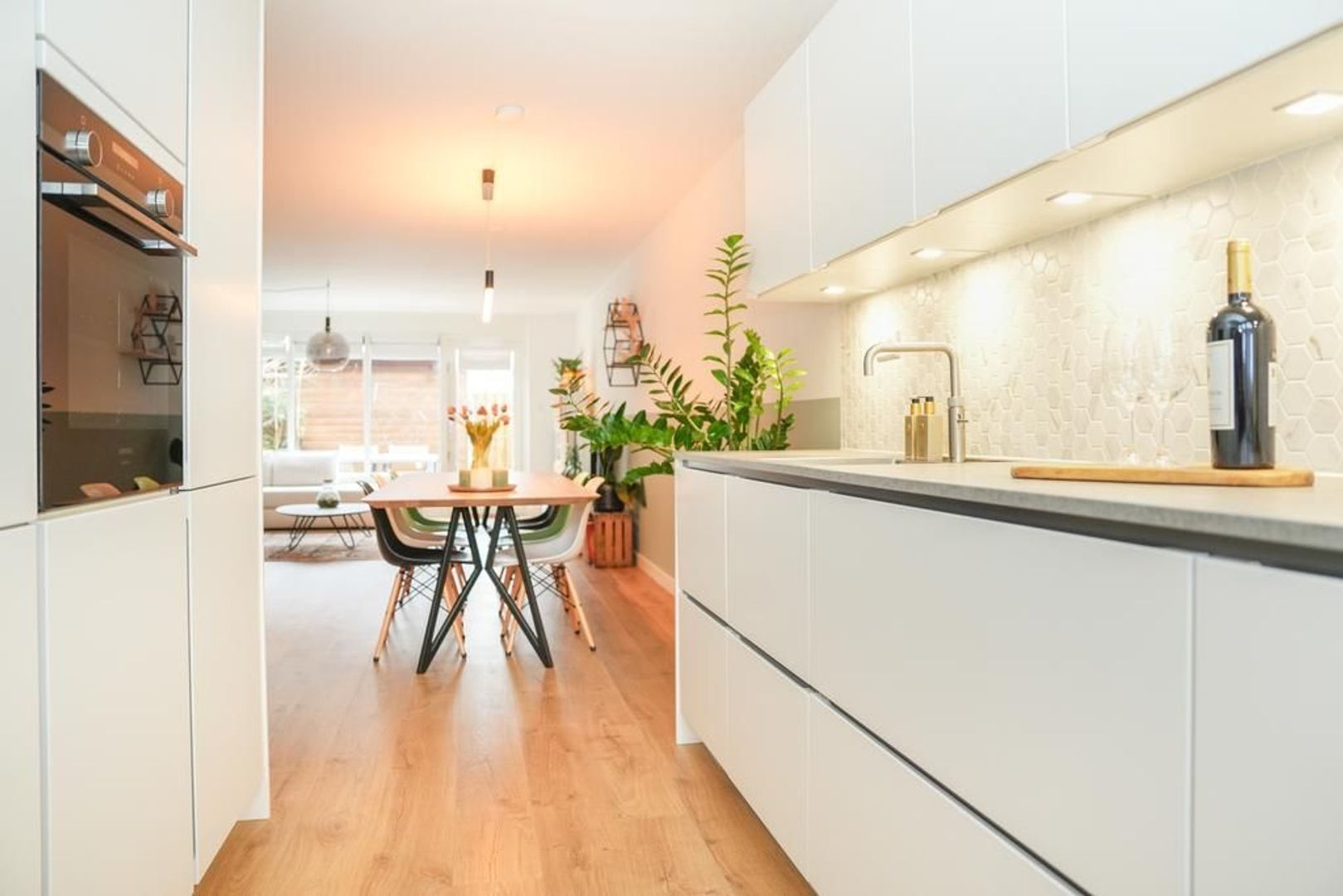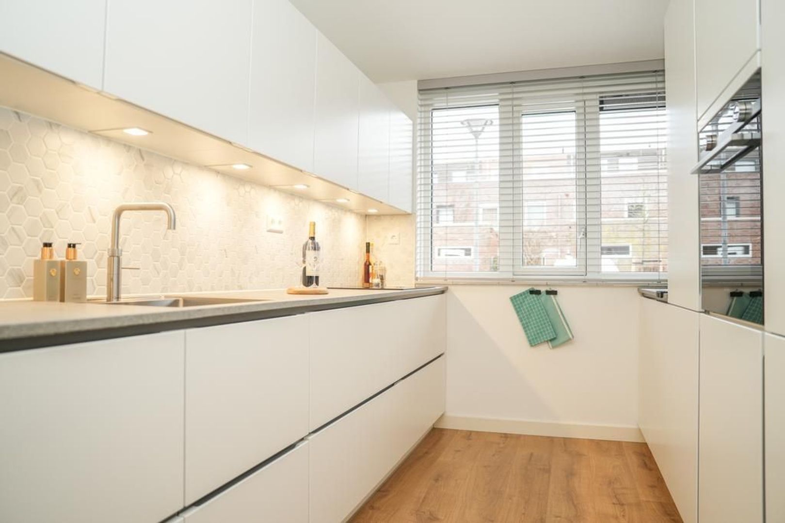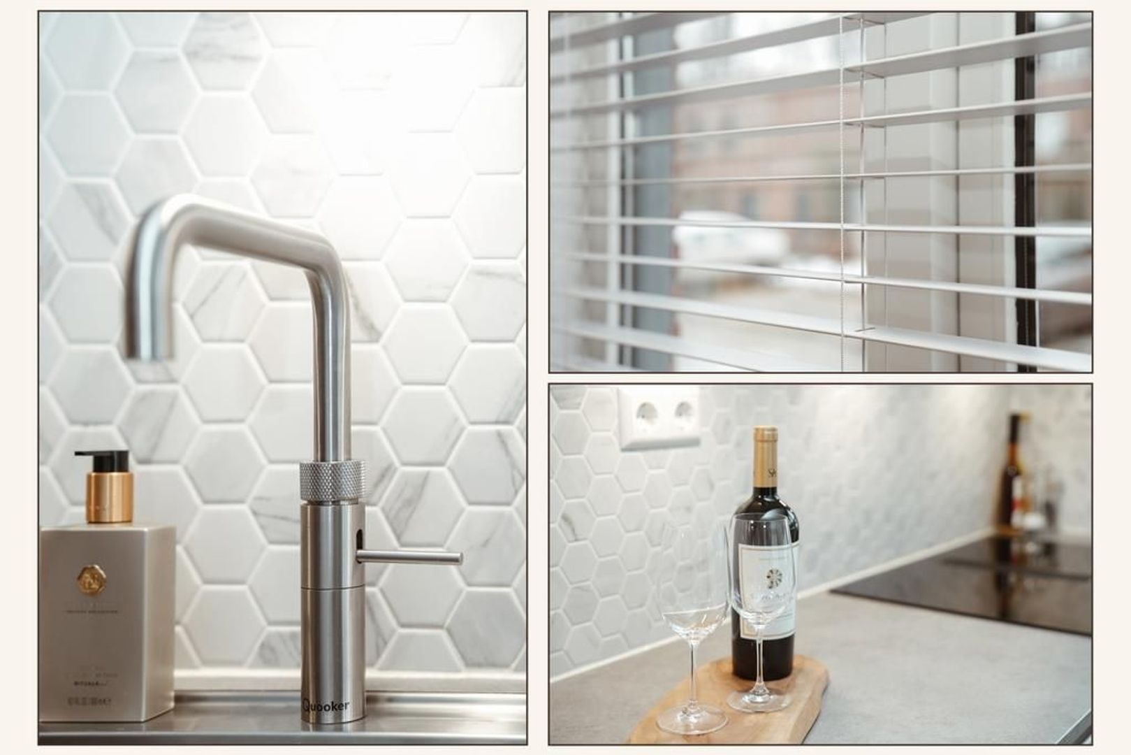 De moderne keuken is in 2021 volledig vernieuwd en voorzien van nieuw inbouwapparatuur. De keuken is voorzien van het volgende inbouwapparatuur: Quooker kraan, kookplaat, afzuigsysteem, oven, vaatwasser, koelkast en vriezer.