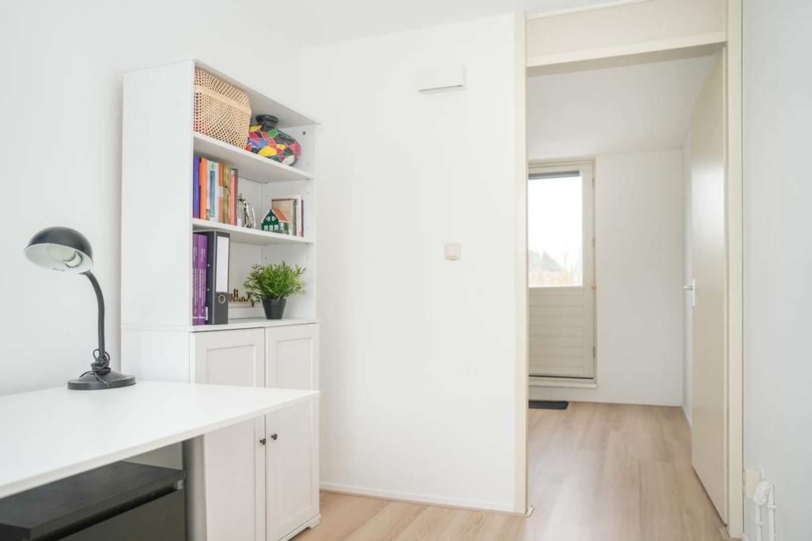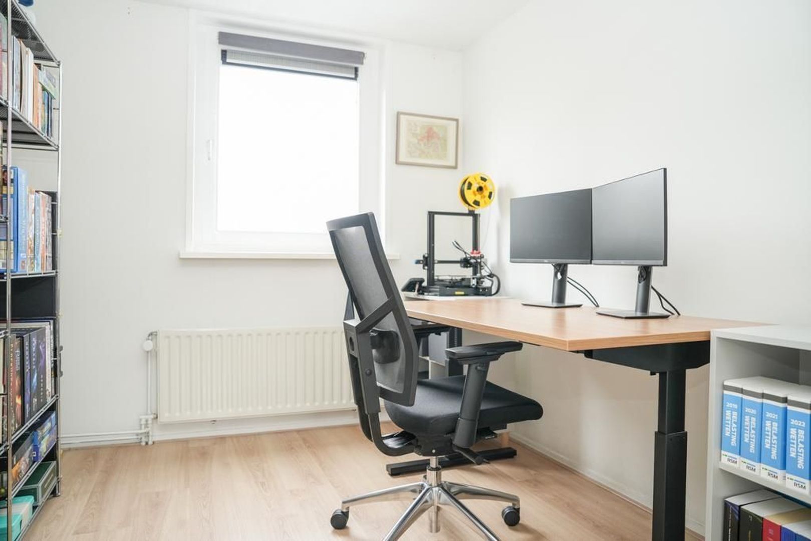 De trap geeft toegang tot de tweede verdieping. Op de tweede verdieping tref je een zeer ruime overloop met witgoedaansluiting. De overloop geeft toegang tot 2 slaapkamers en het dakterras. De slaapkamers zijn ruim van formaat en net afwerkt. De kamers dienen uitstekend als kinder-, werk-, of hobbykamer. Het dakterras is gelegen op het zuiden en leent zich perfect voor het creëren van een relaxte extra buitenruimte. Hier kan je heerlijk genieten van de buitenlucht met vrij uitzicht over het groen.