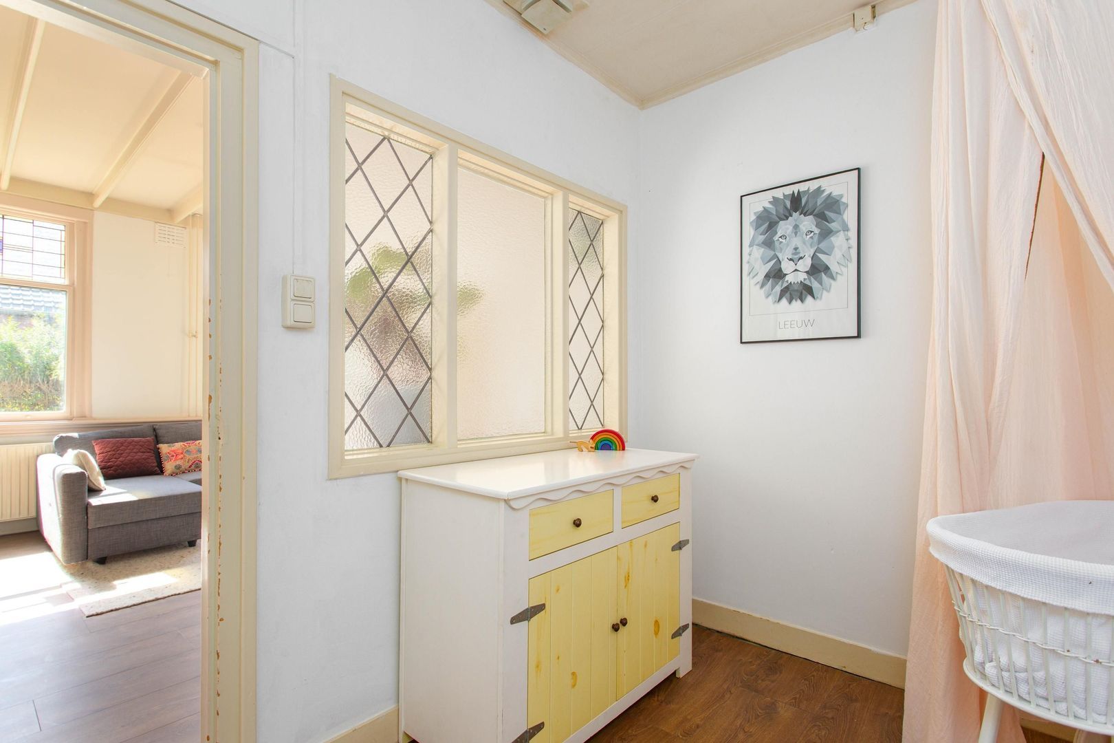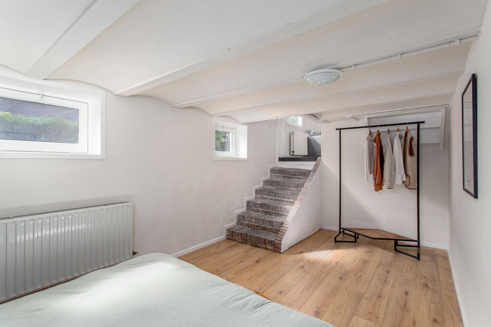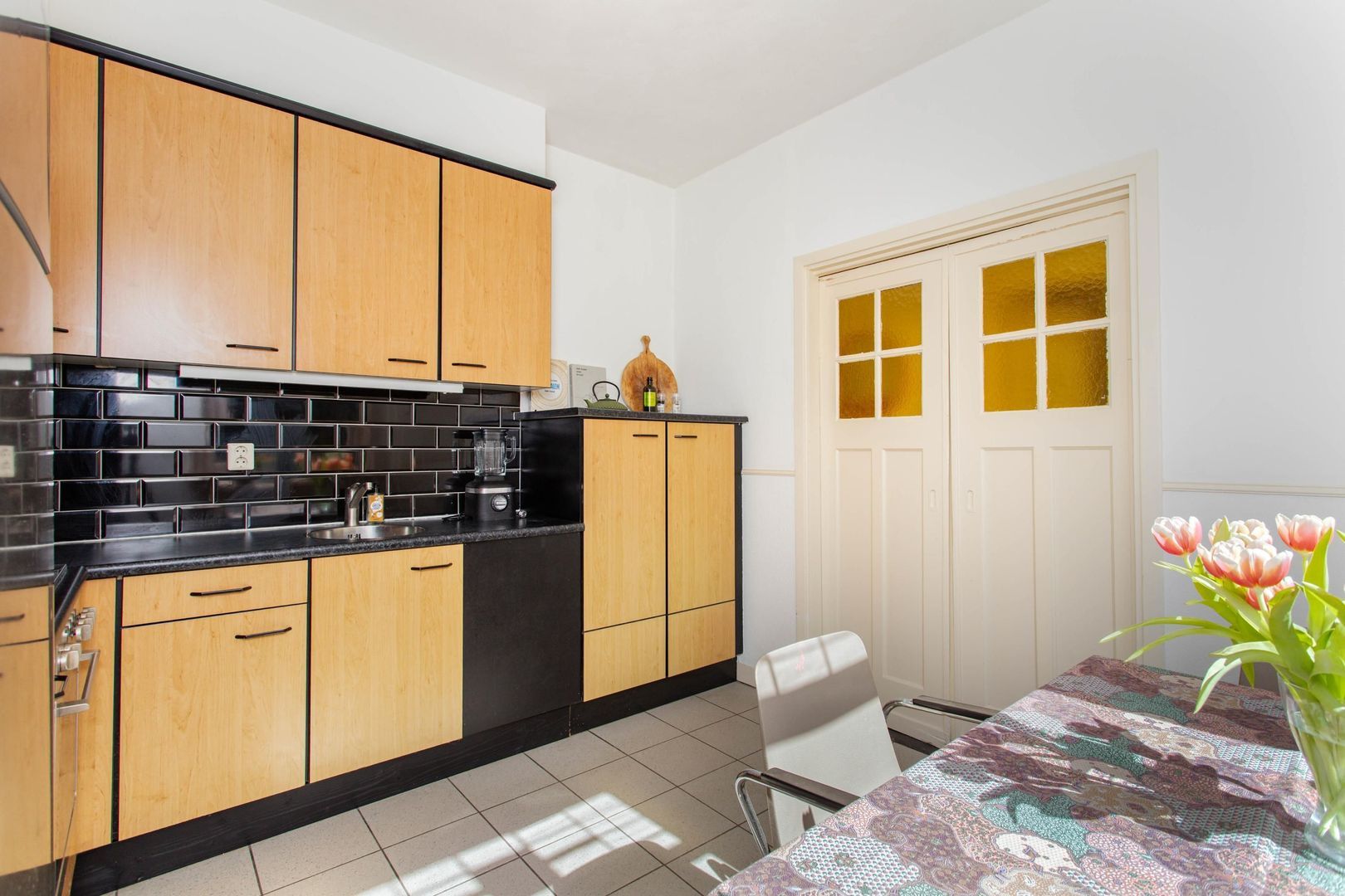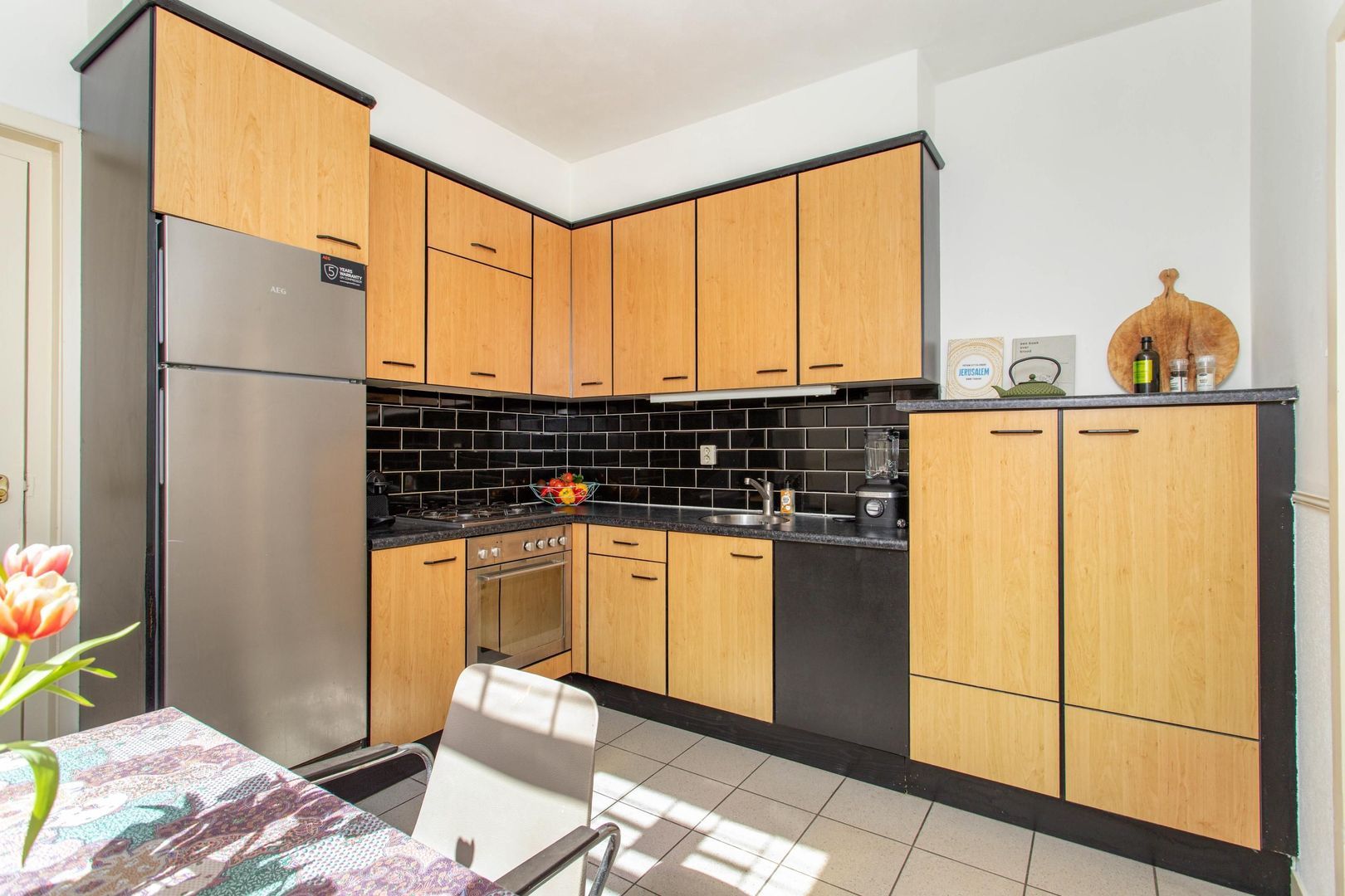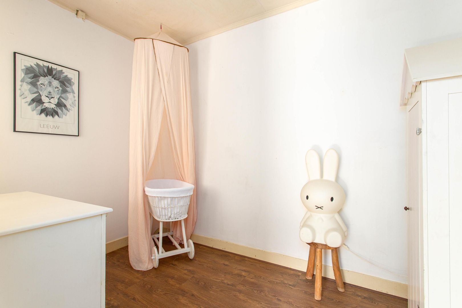 Entree/hal voorzien van een tegelvloer met toegang tot het toilet, woonkamer en keuken. Achter de ensuite deuren bevindt zich de dichte keuken, welke ruim is opgezet en voorzien van inbouwapparatuur. Via de keuken bereik je de grote badkamer, welke voorzien is van een ligbad, douche, toilet, wastafel en inbouwkasten. Lichte woonkamer voorzien van parketvloer en balken plafond. Twee slaapkamers, waarvan de ouderslaapkamer zich middels een trap(je) naar beneden bevindt. Boven de ouderslaapkamer bevindt zich de eetkamer met veel lichtinval, originele details en parketvloer.